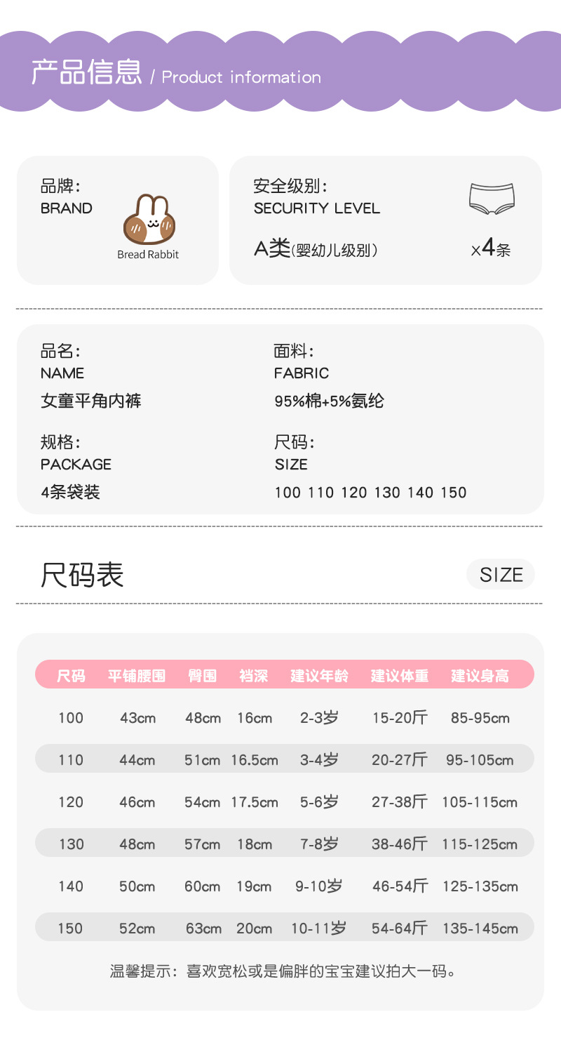 여아 속옷 어린이 면 4 코너 베이비 클래스 복서 소녀의 큰 어린이 면 항균 새 클립 반바지스토어 가기