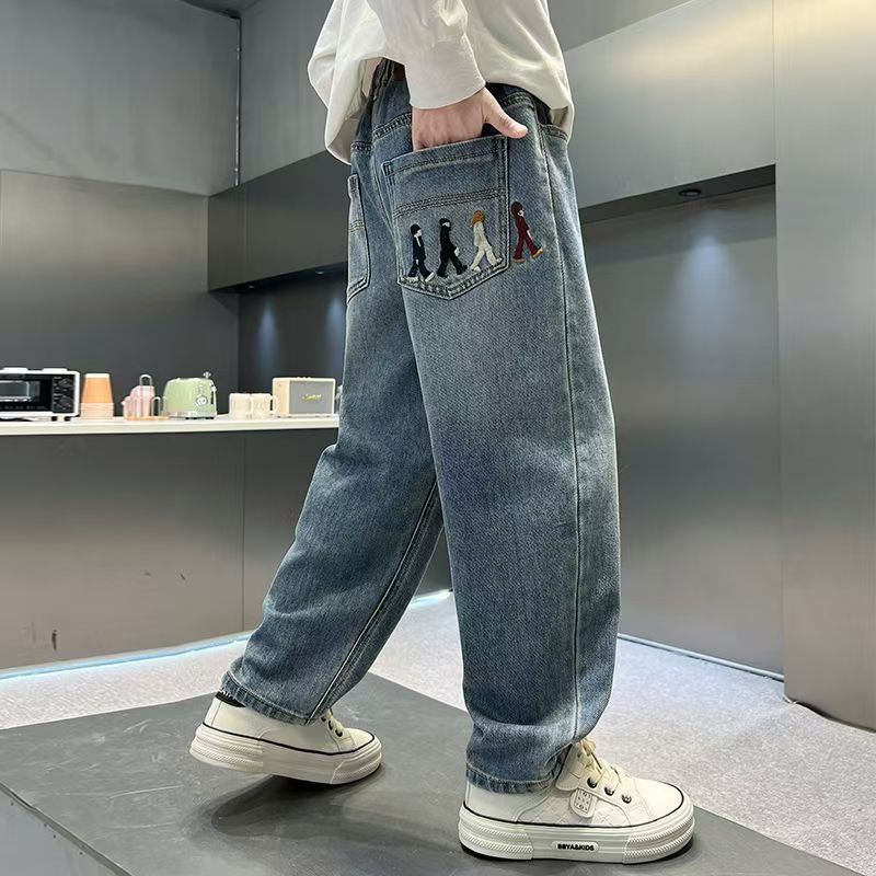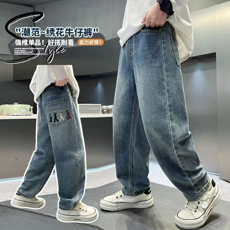 소년의 2025 봄 데님 토레 바지 어린이 청바지 얇은 하렘 바지 높은 허리 부드럽고 편안한스토어 가기