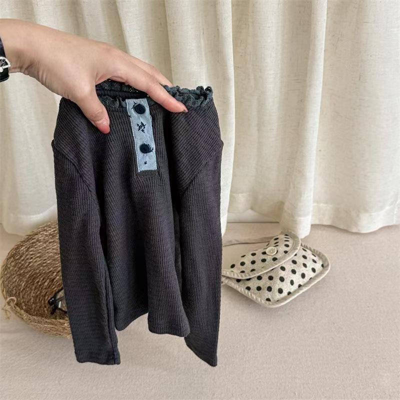 부드러운 부드러운 ~ 단색 피부 친화적 인! 한국 소녀의 아기 레이스 크루 넥베이스 셔츠 어린이 올매치 긴팔 티셔츠