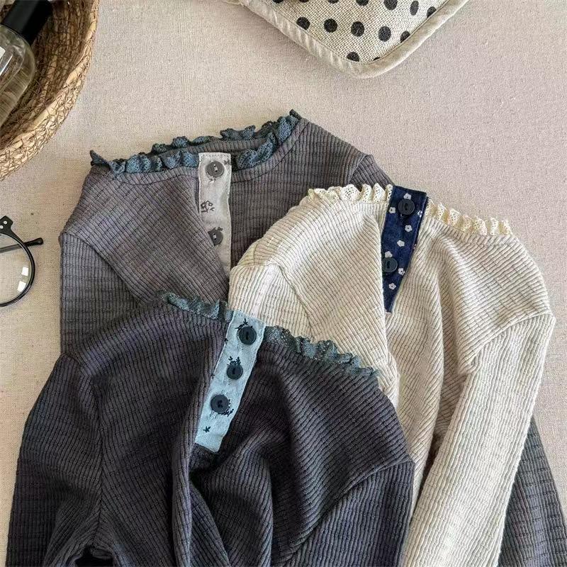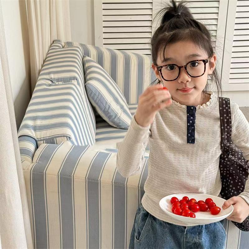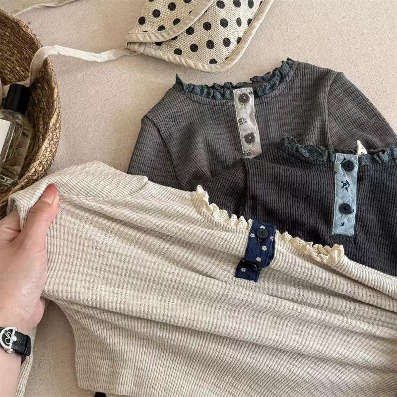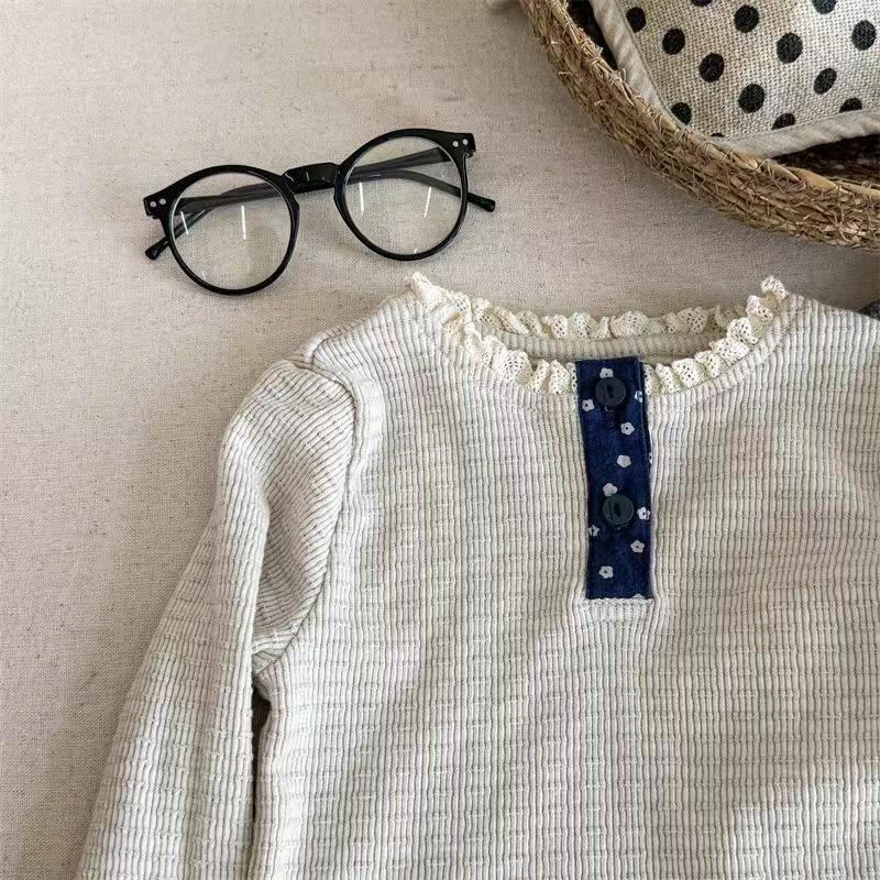 부드러운 부드러운 ~ 단색 피부 친화적 인! 한국 소녀의 아기 레이스 크루 넥베이스 셔츠 어린이 올매치 긴팔 티셔츠스토어 가기