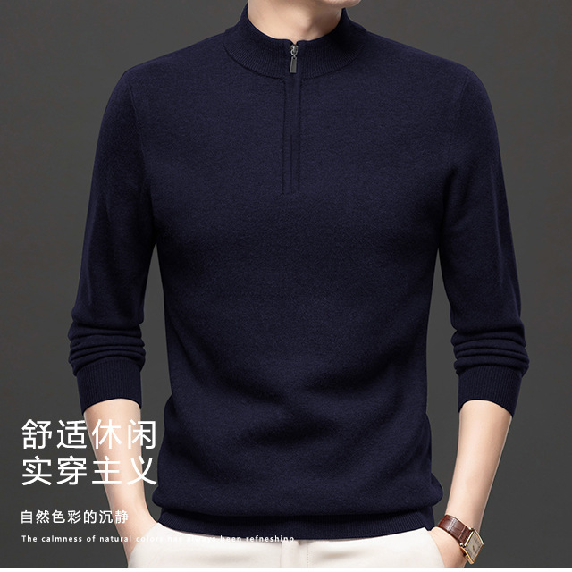 2024 년 가을과 겨울 새 하프 지퍼 스웨터 남자 캐주얼 올 매치 긴팔 풀린 하프 터틀넥 남자 스웨터스토어 가기