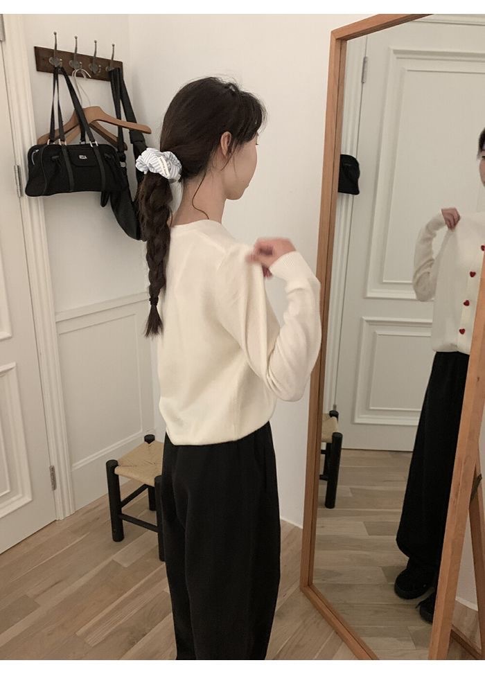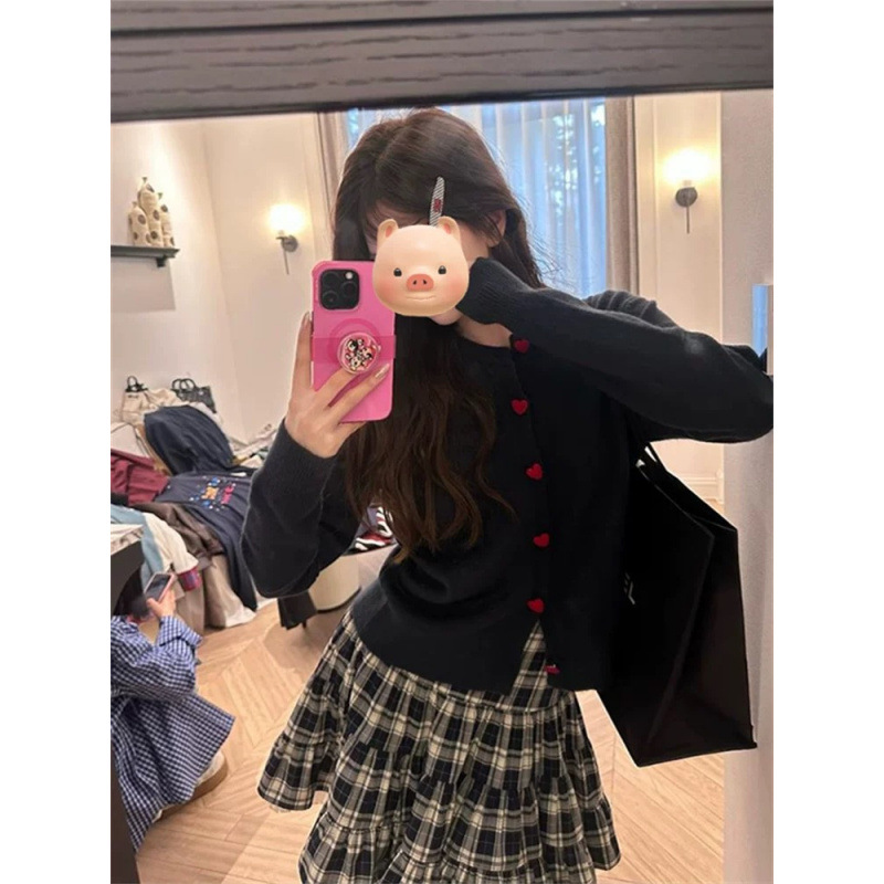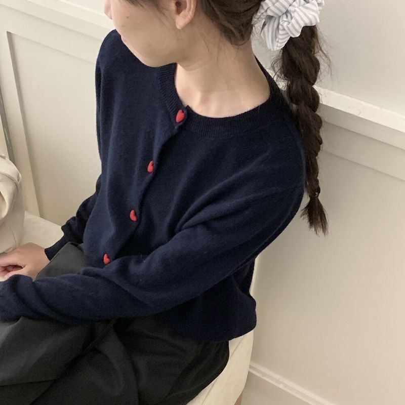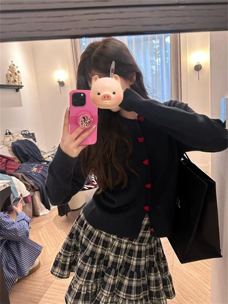 2025 새로운 한국 스타일 느슨한 대학 스타일 사랑 버튼 니트 카디건 여성 이른 가을 스웨터 코트 탑
