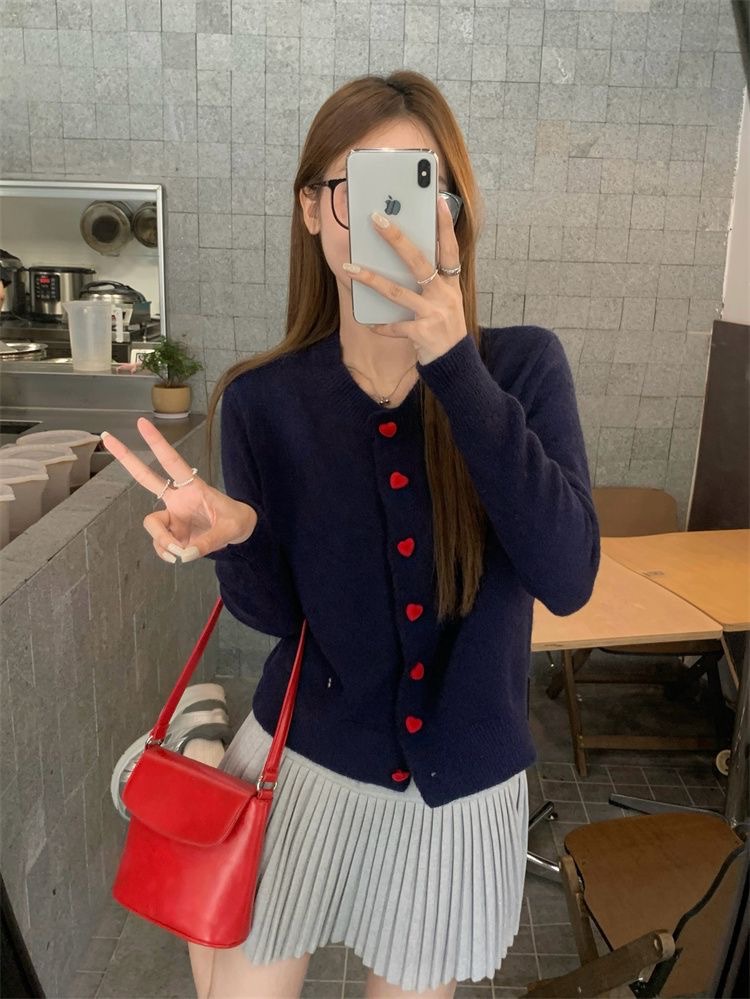 2025 새로운 한국 스타일 느슨한 대학 스타일 사랑 버튼 니트 카디건 여성 이른 가을 스웨터 코트 탑스토어 가기