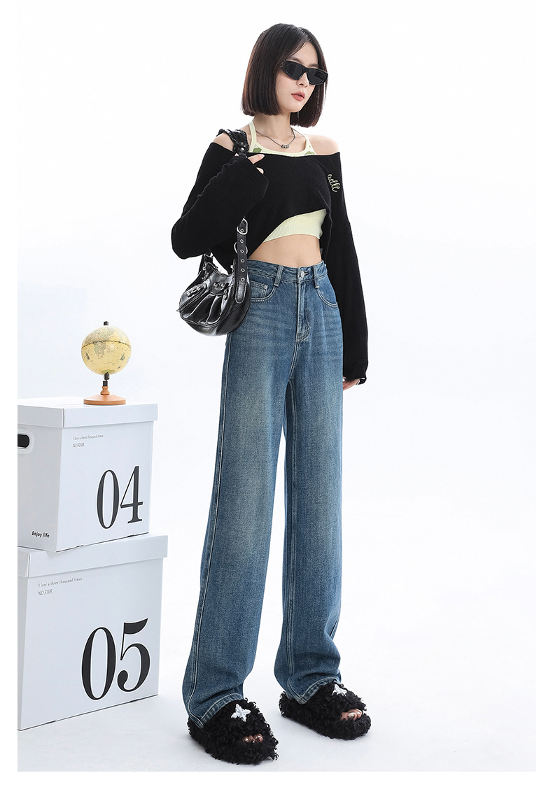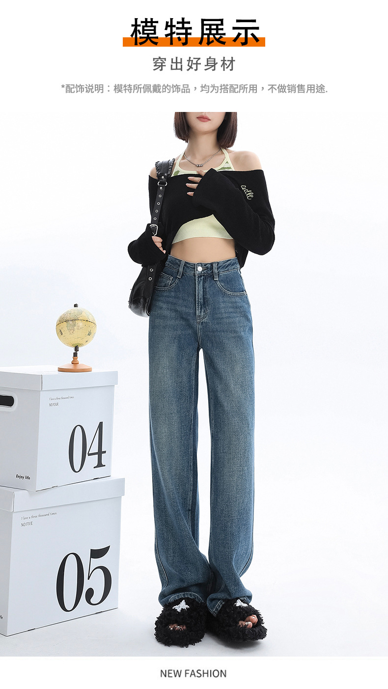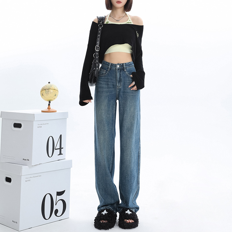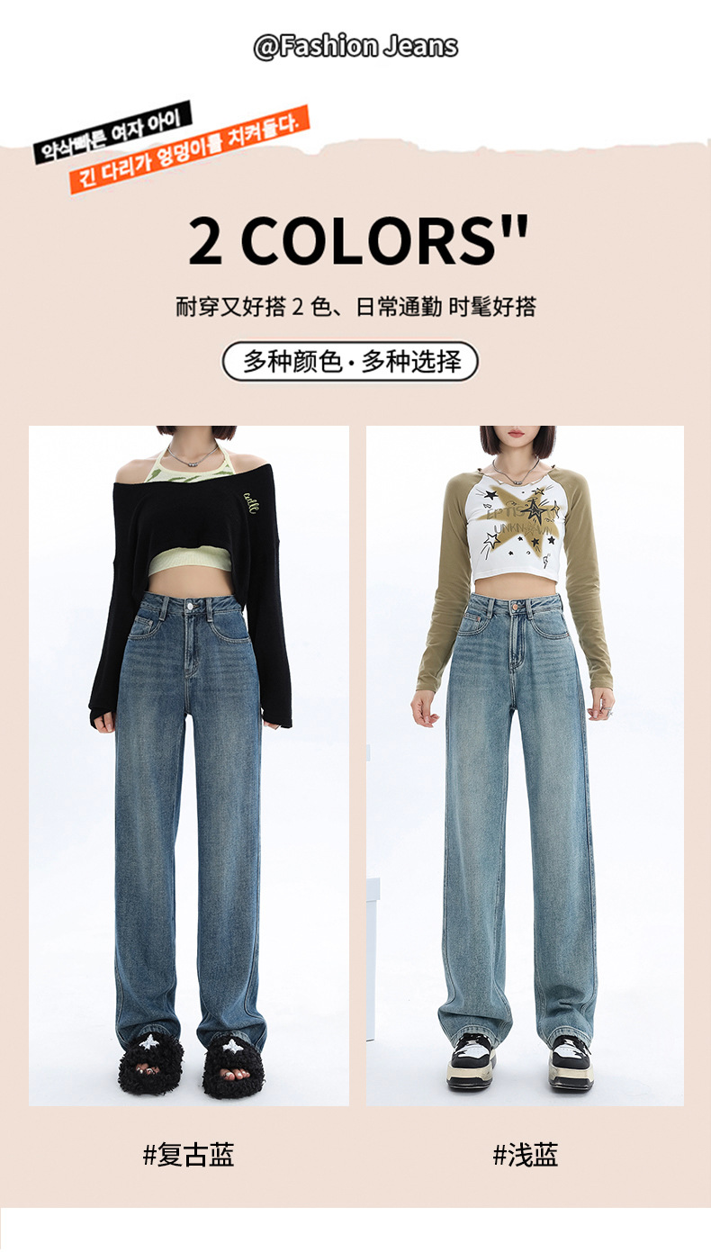 청바지 2025 새로운 여성의 이른 봄 인기 바지 높은 허리 스트레이트 느슨한 슬림 넓은 다리 바지스토어 가기