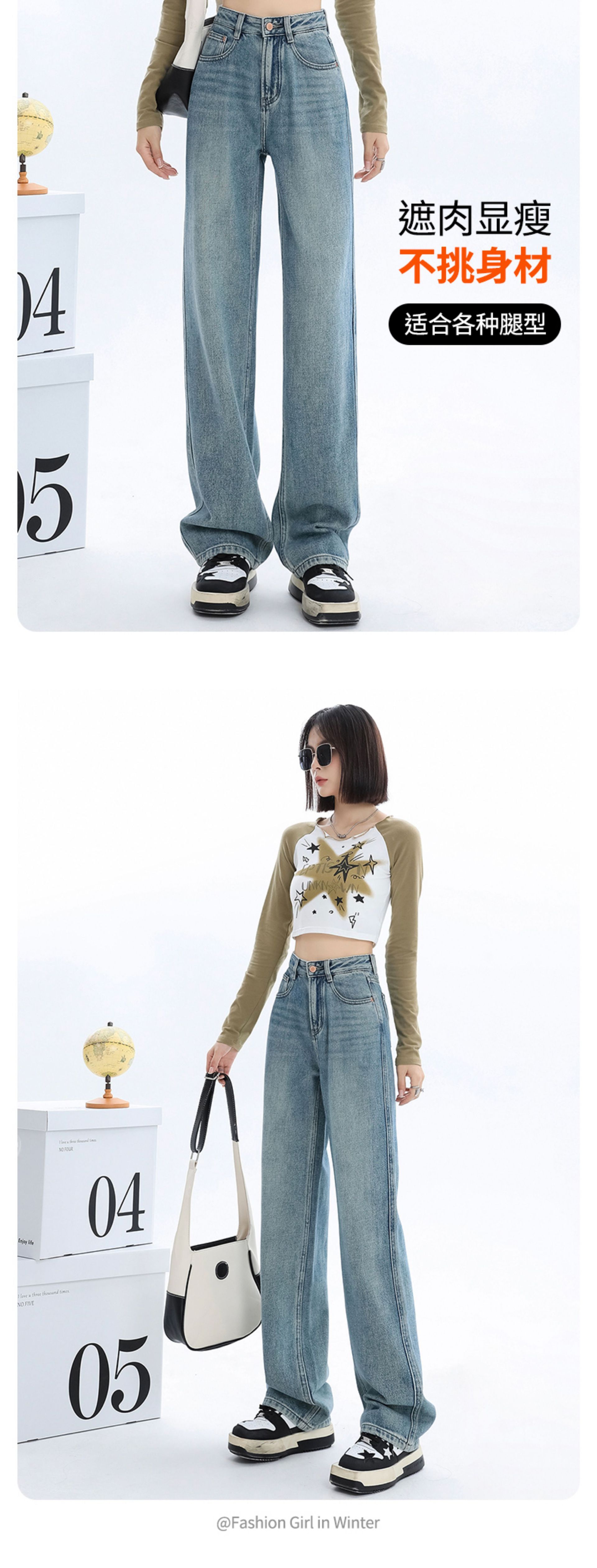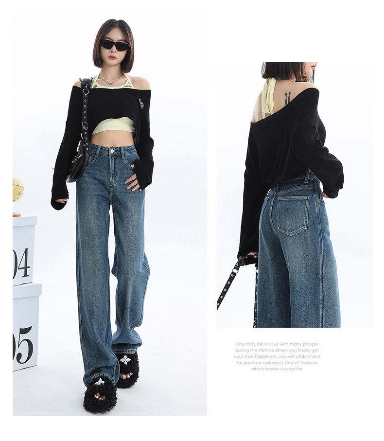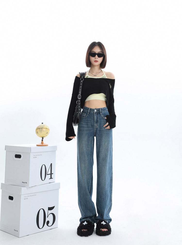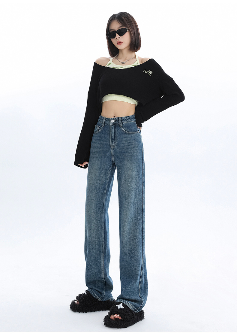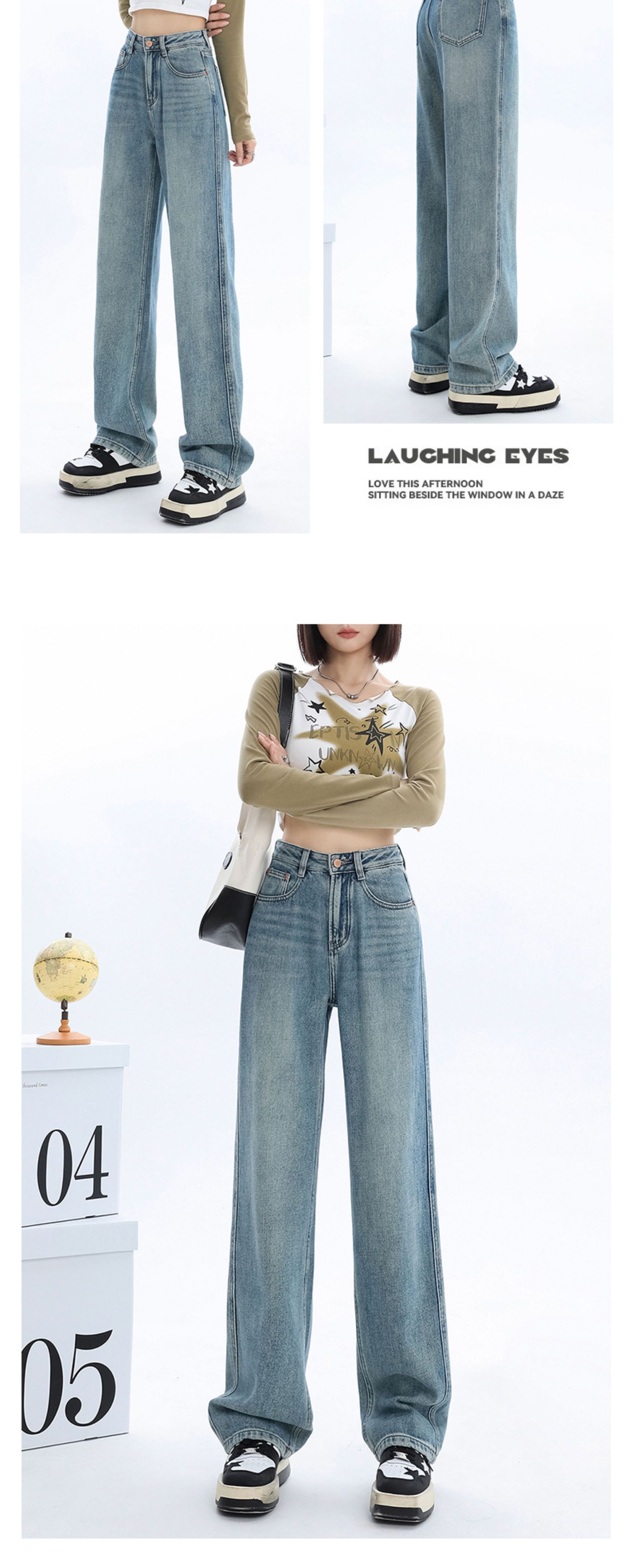 청바지 2025 새로운 여성의 이른 봄 인기 바지 높은 허리 스트레이트 느슨한 슬림 넓은 다리 바지스토어 가기