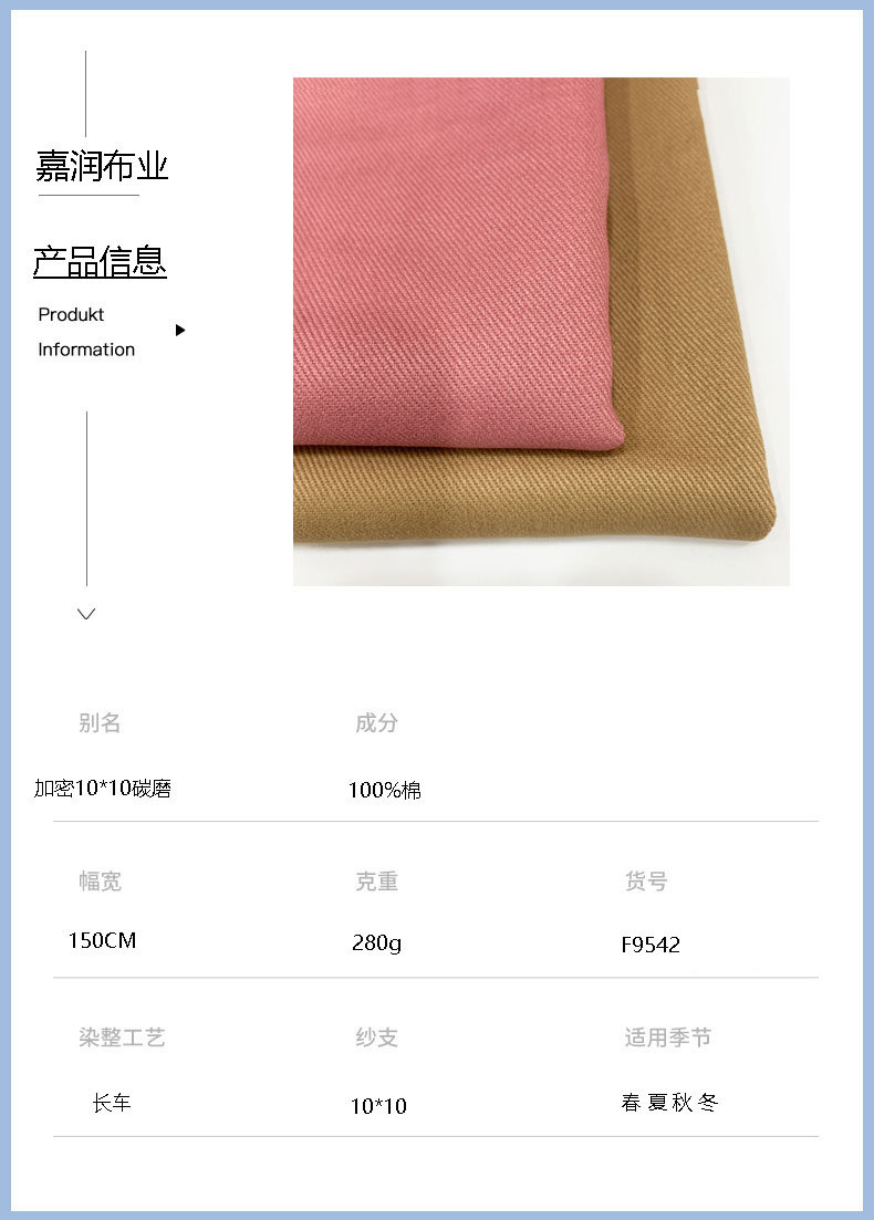 면 280g 암호화 비 탄성 10*10 탄소 윈드 브레이커 코트 바지 모자 신발 직물