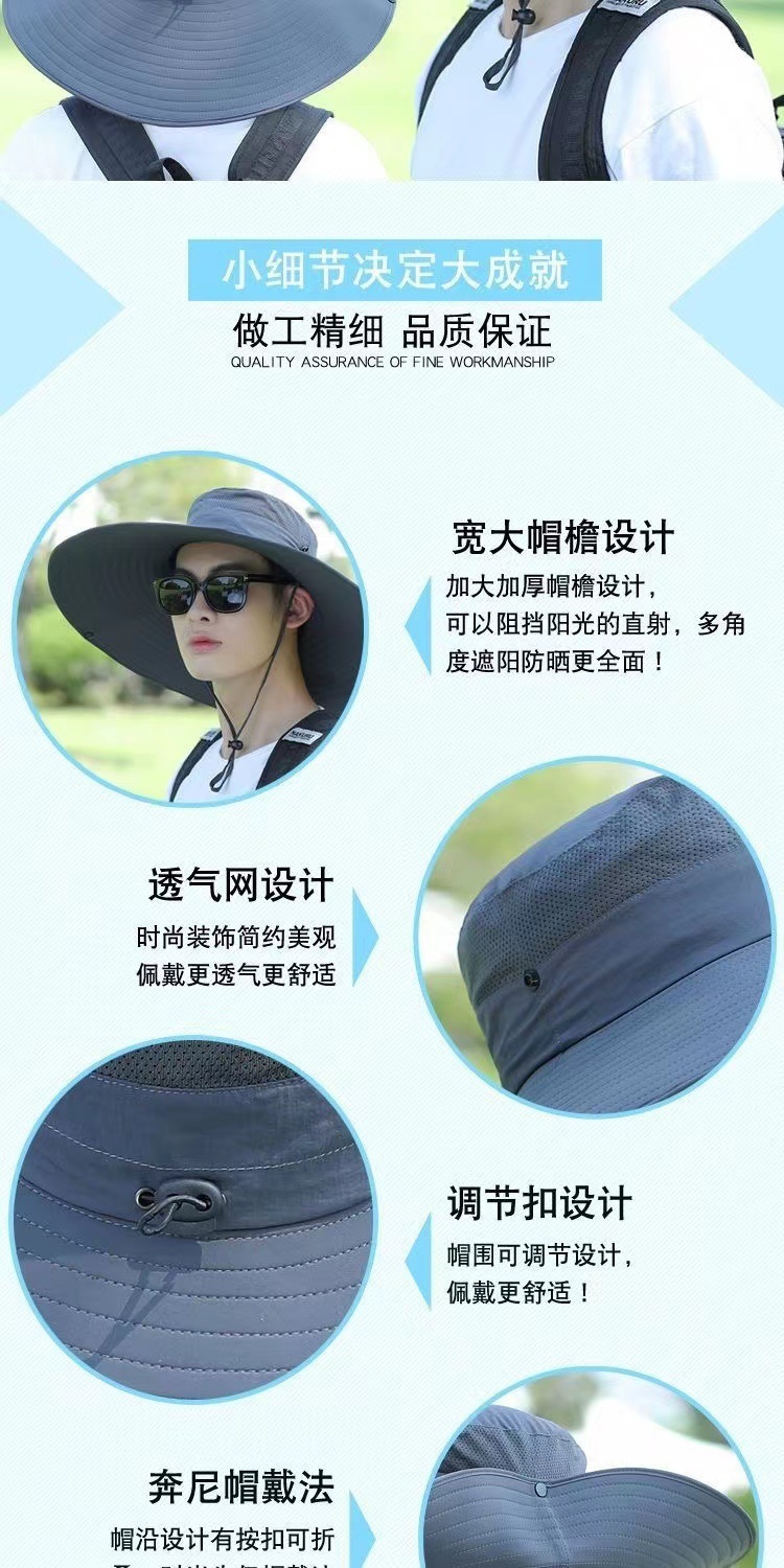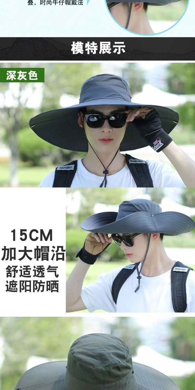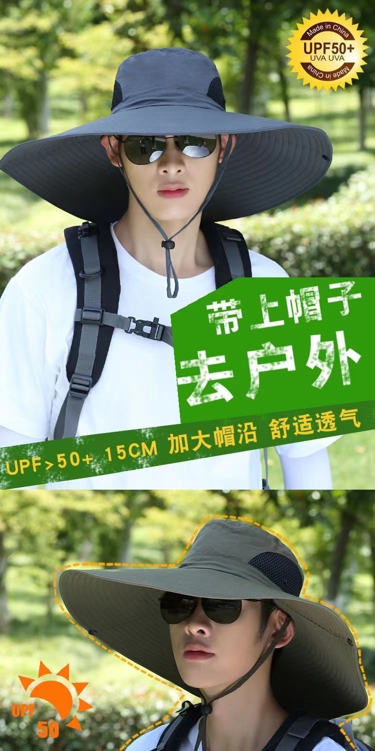 여름 새로운 15CM 빅 브림 모자 남자 야외 차양 태양 모자 낚시 모자 산 어부스토어 가기