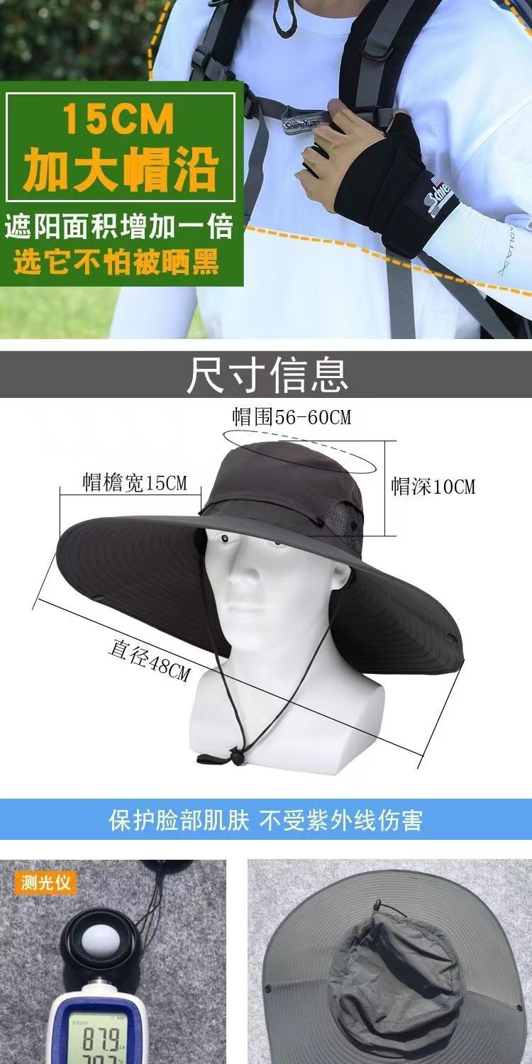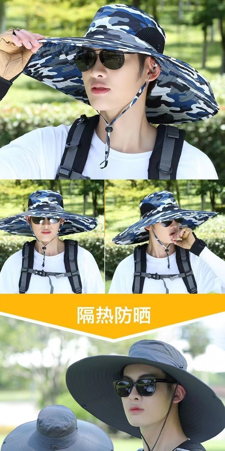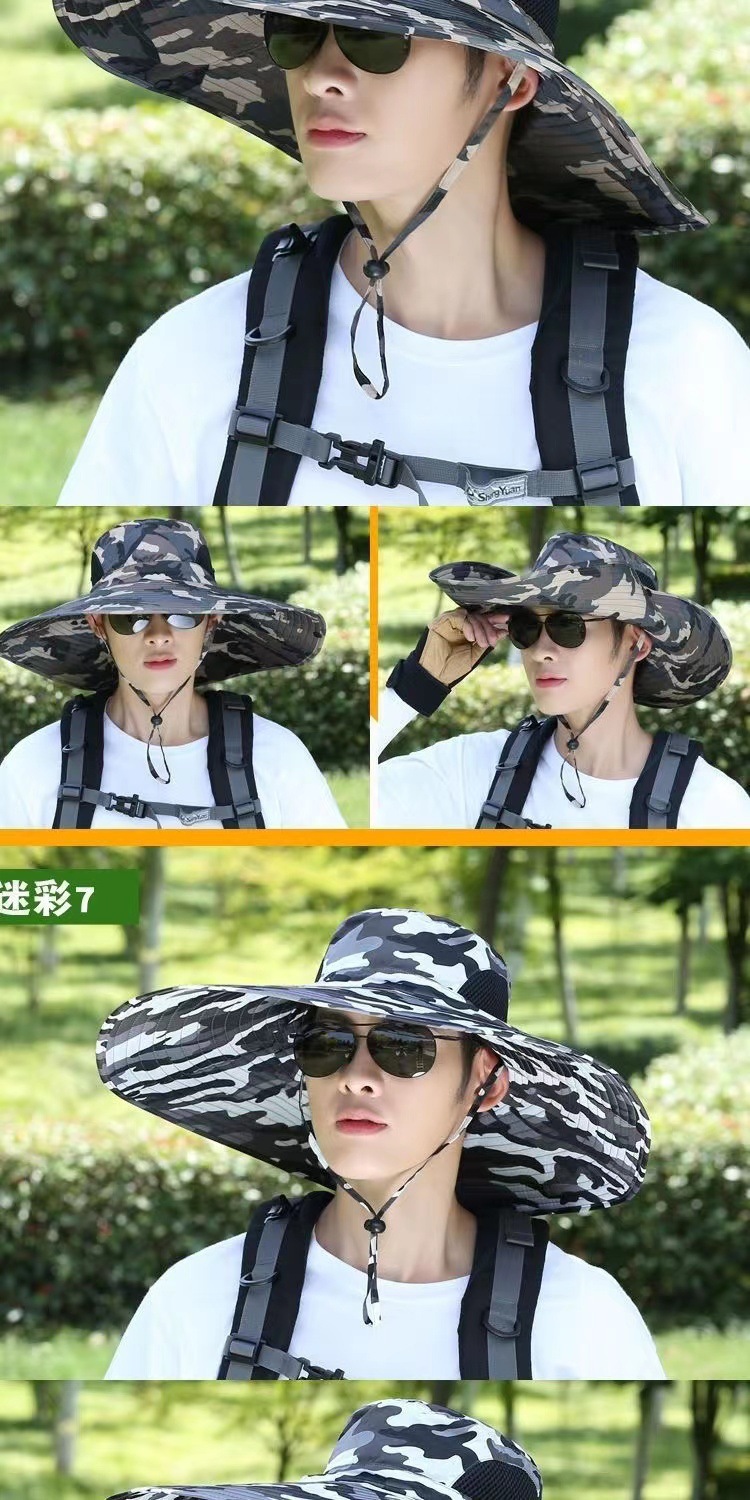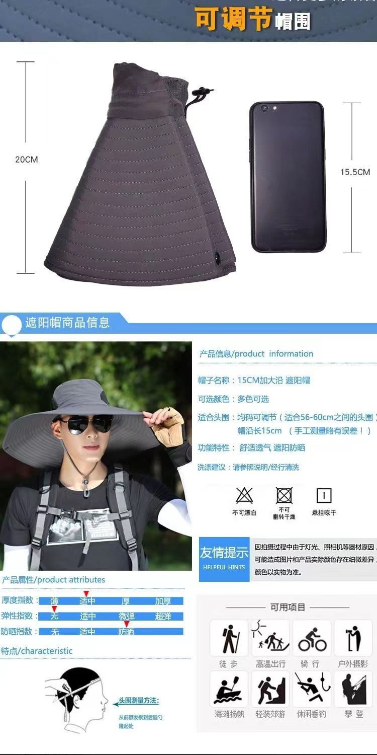 여름 새로운 15CM 빅 브림 모자 남자 야외 차양 태양 모자 낚시 모자 산 어부