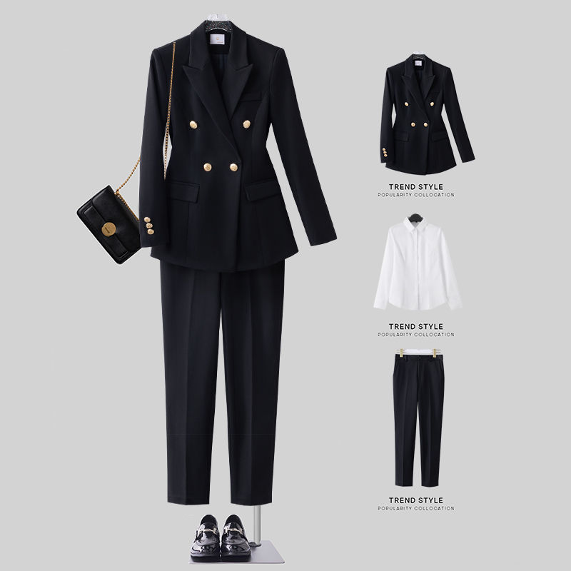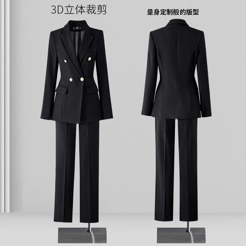Forumsuit 여성 세트 대학생 공무원 인터뷰 적합 2025 봄과 가을 슬림 핏 블랙 전문 세트 세트 여성스토어 가기