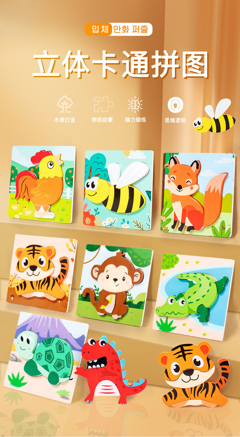 어린이 퍼즐 3D 동물 교통인지 깨달음 만화 나무 작은 퍼즐 장난감 소스 공장스토어 가기