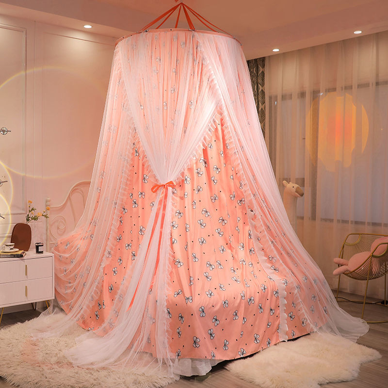 돔 모기장 더블 레이어 천 음영 침대 커튼 천장 라운드 먼지 탑 공주 바람 바닥 서 모기장 싱글 기숙사스토어 가기