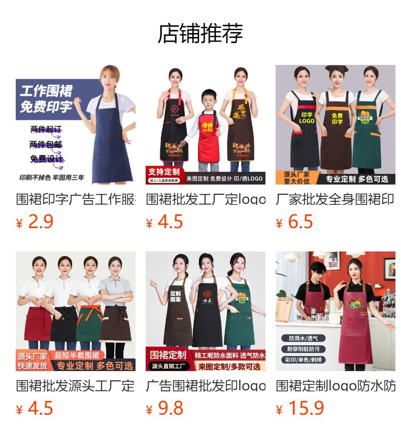 방수 앞치마 도매 인쇄 맞춤 로고 인쇄 어깨끈 얼룩 방지 작업복 주방 커피 식당 전용스토어 가기