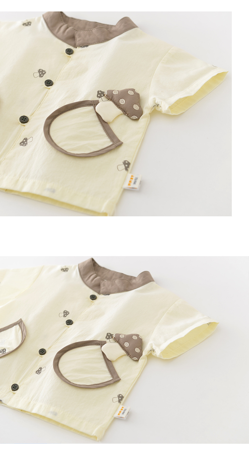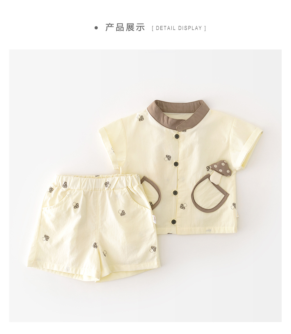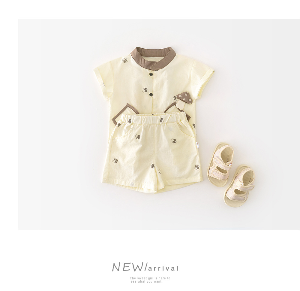 여름 새로운 한국식 어린이 투피스 세트 수직 칼라와 유아 만화 버섯 반팔 세트 52730스토어 가기