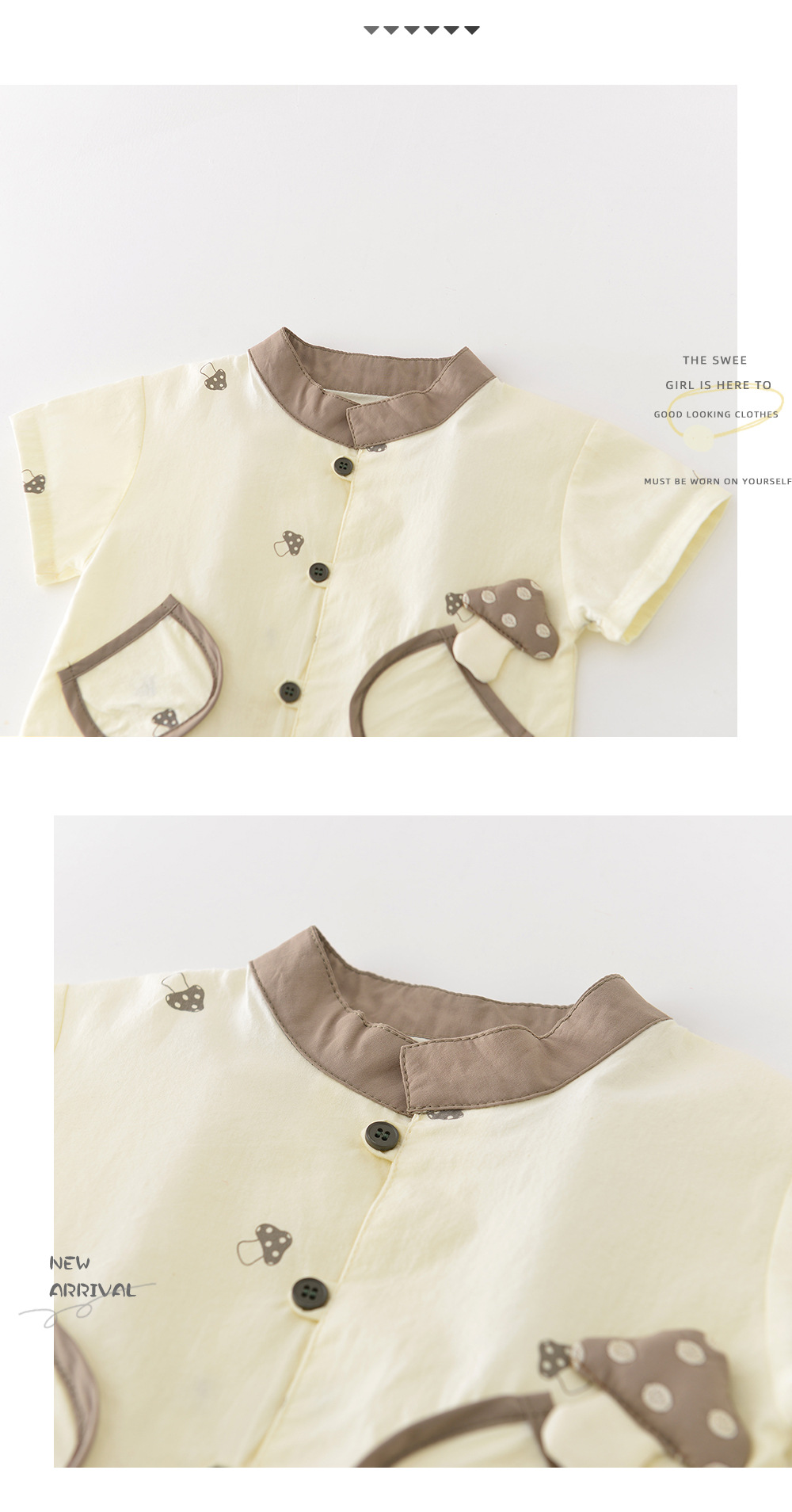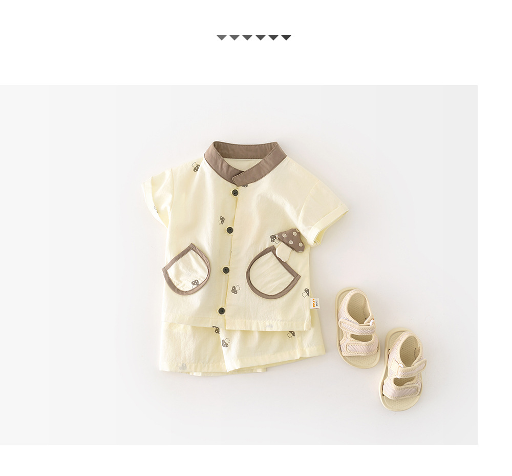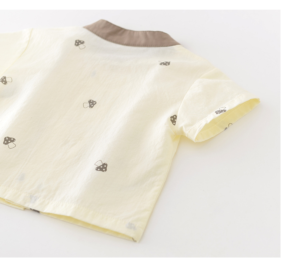 여름 새로운 한국식 어린이 투피스 세트 수직 칼라와 유아 만화 버섯 반팔 세트 52730스토어 가기