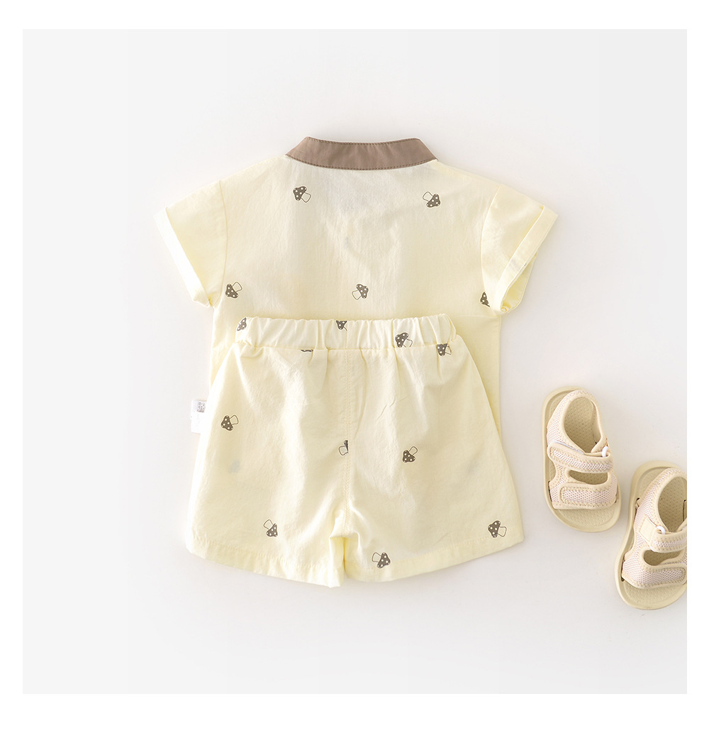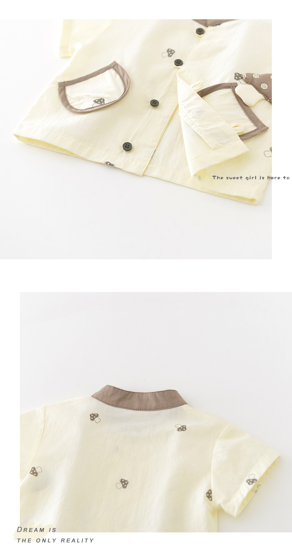 여름 새로운 한국식 어린이 투피스 세트 수직 칼라와 유아 만화 버섯 반팔 세트 52730