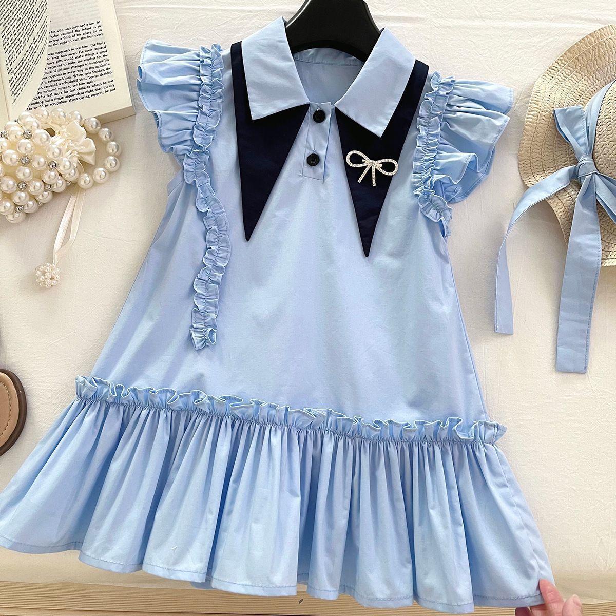 새로운 2025 여름 한국 스타일 소녀 여름 패션 폭발 모든 경기 반팔 대학 스타일 셔츠 칼라 원피스 트렌디스토어 가기