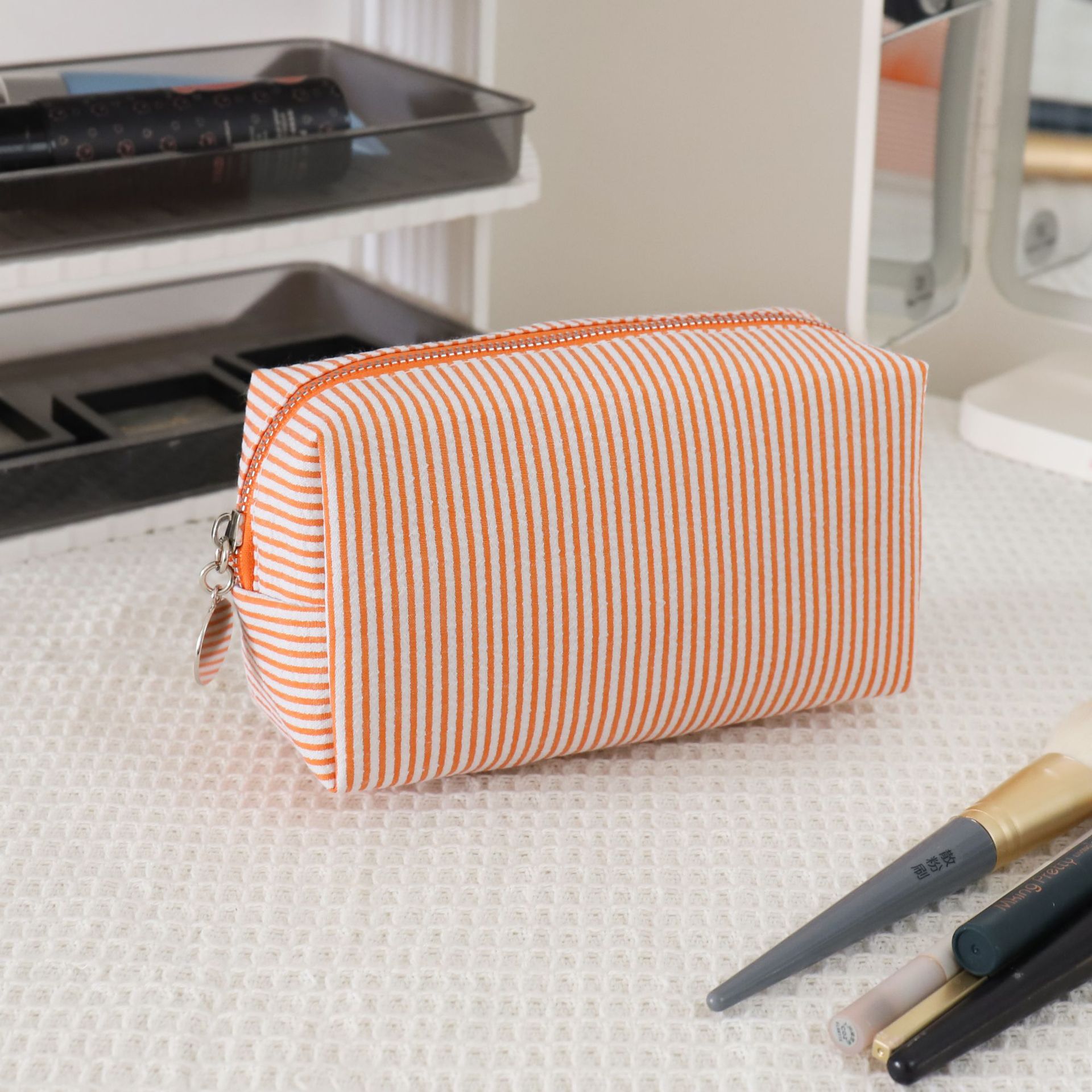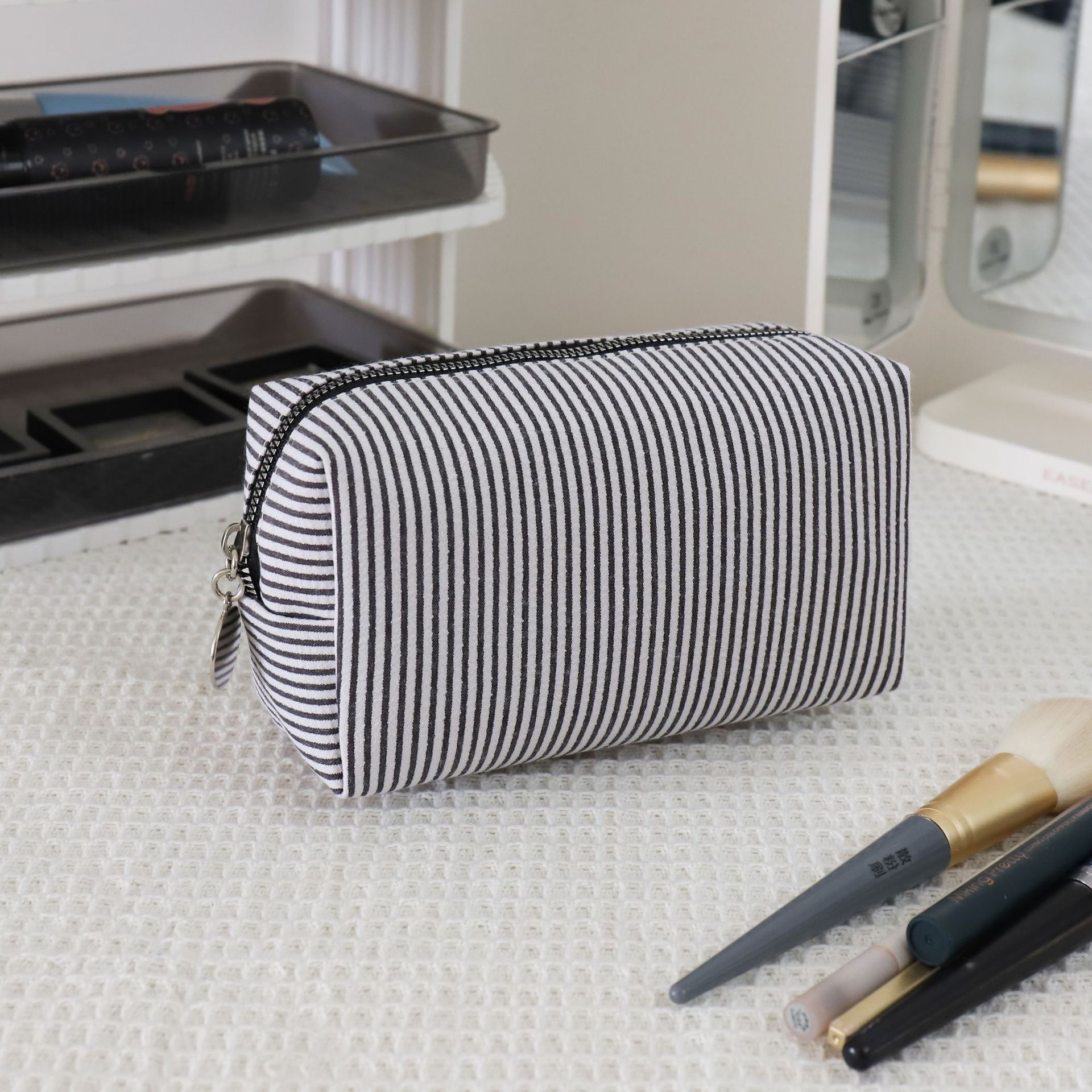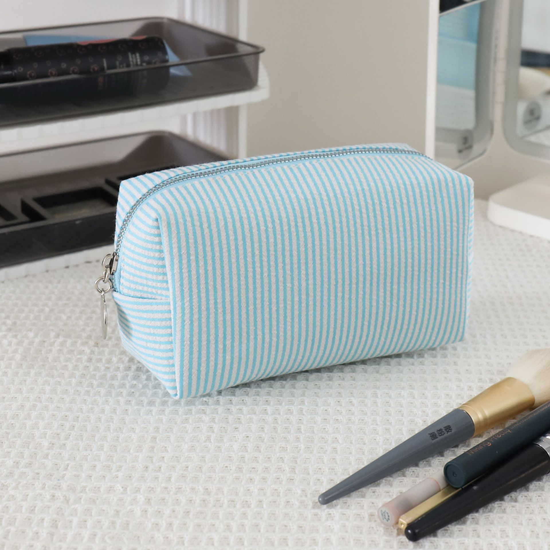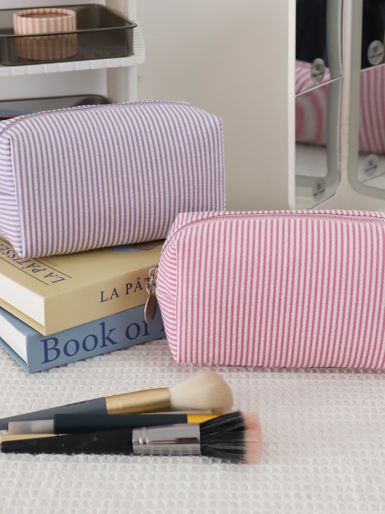 코드가 있는 크로스보더 시어서커 화장품 가방, 인디언 스타일 스트라이프 세면도구 가방, 미시시피 인기스토어 가기