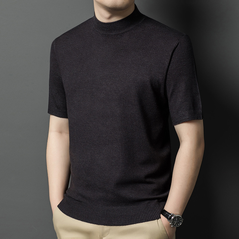 2024 년 여름 남자 하프 하이 칼라 반팔 티셔츠 모조 울 니트웨어 캐주얼 비즈니스 올 매치 내베이스 셔츠