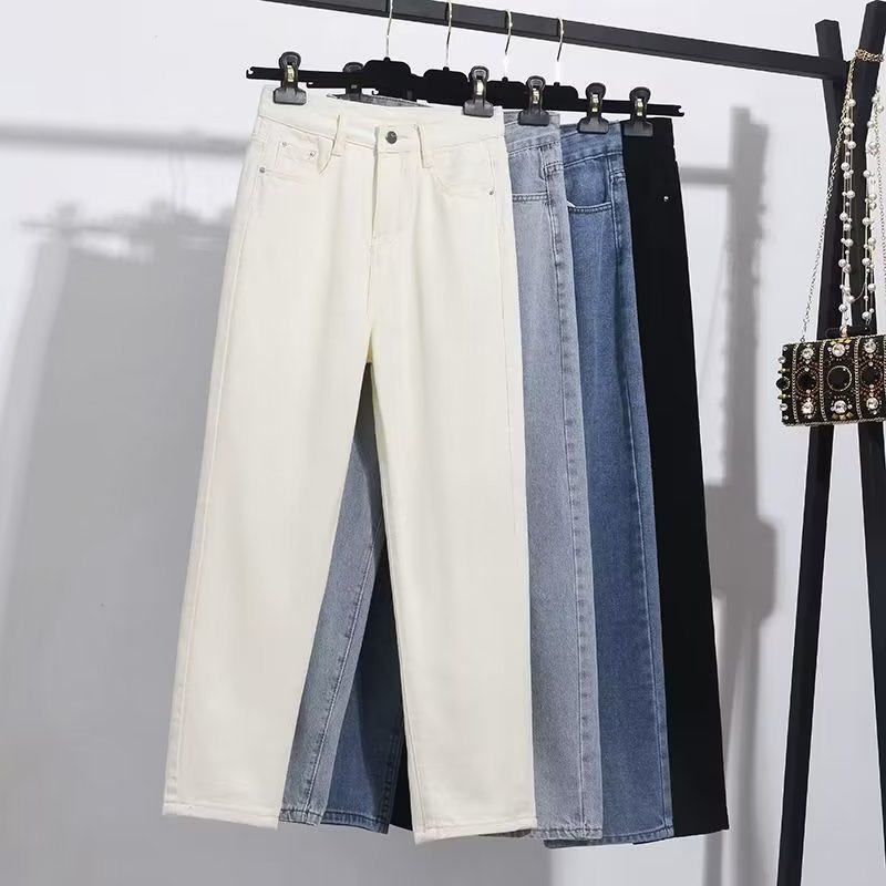 넓은 다리 바지 여자 2023 가을 겨울 새로운 한국 스타일 레트로 스트레이트 바지 높은 허리 내부 청바지 학생 올매치스토어 가기