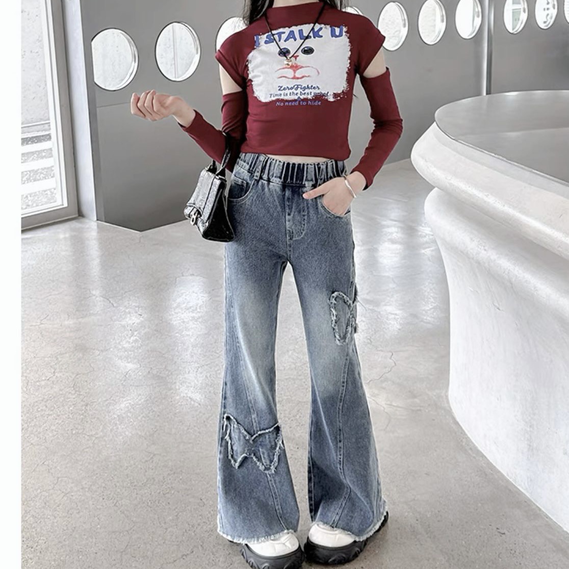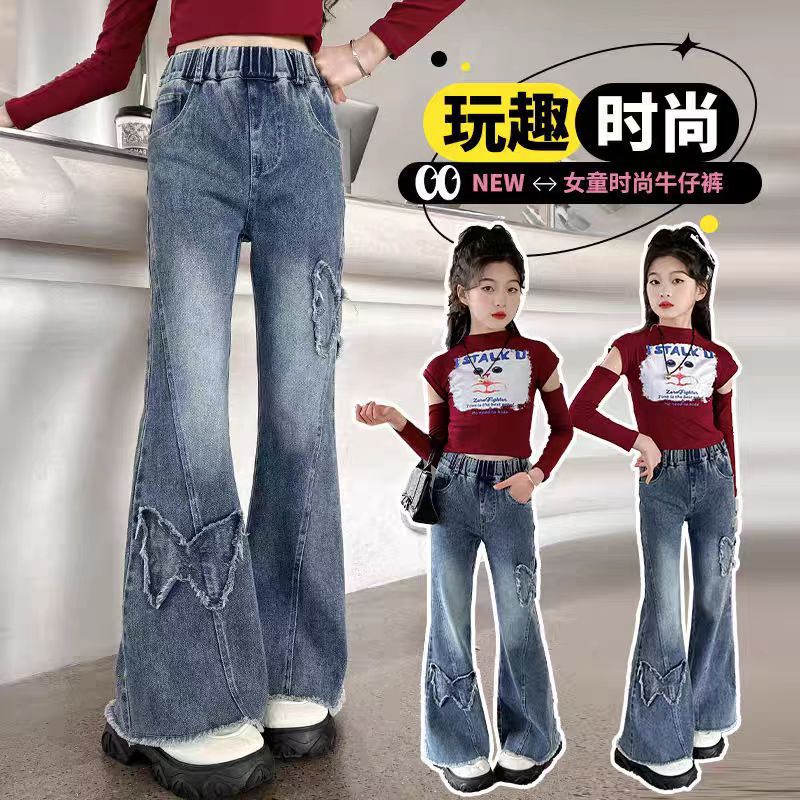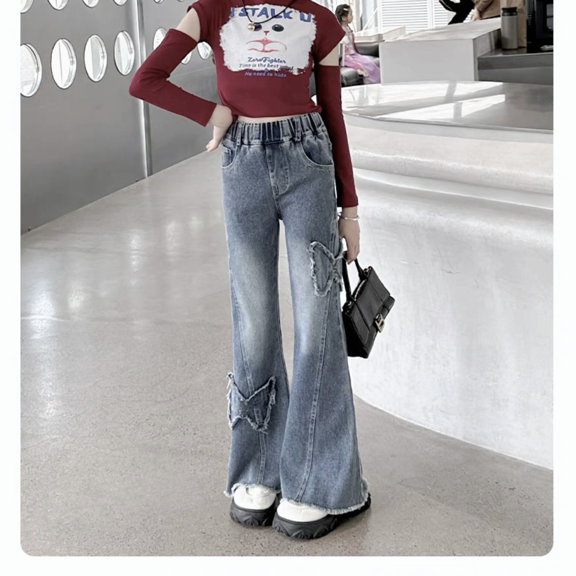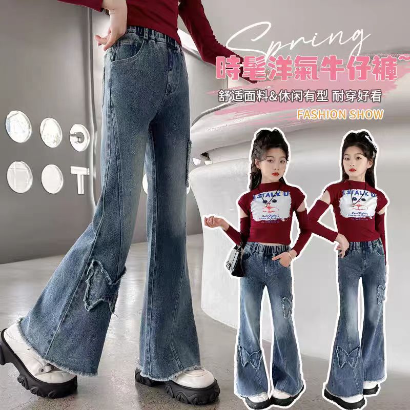 소녀 중 · 대형 어린이 2025 봄 청바지 어린이 청바지 얇은 스트레치 플라 바지 높은 허리 부드럽고 편안한스토어 가기