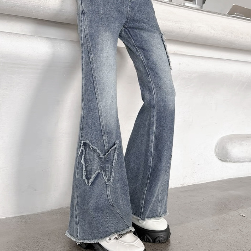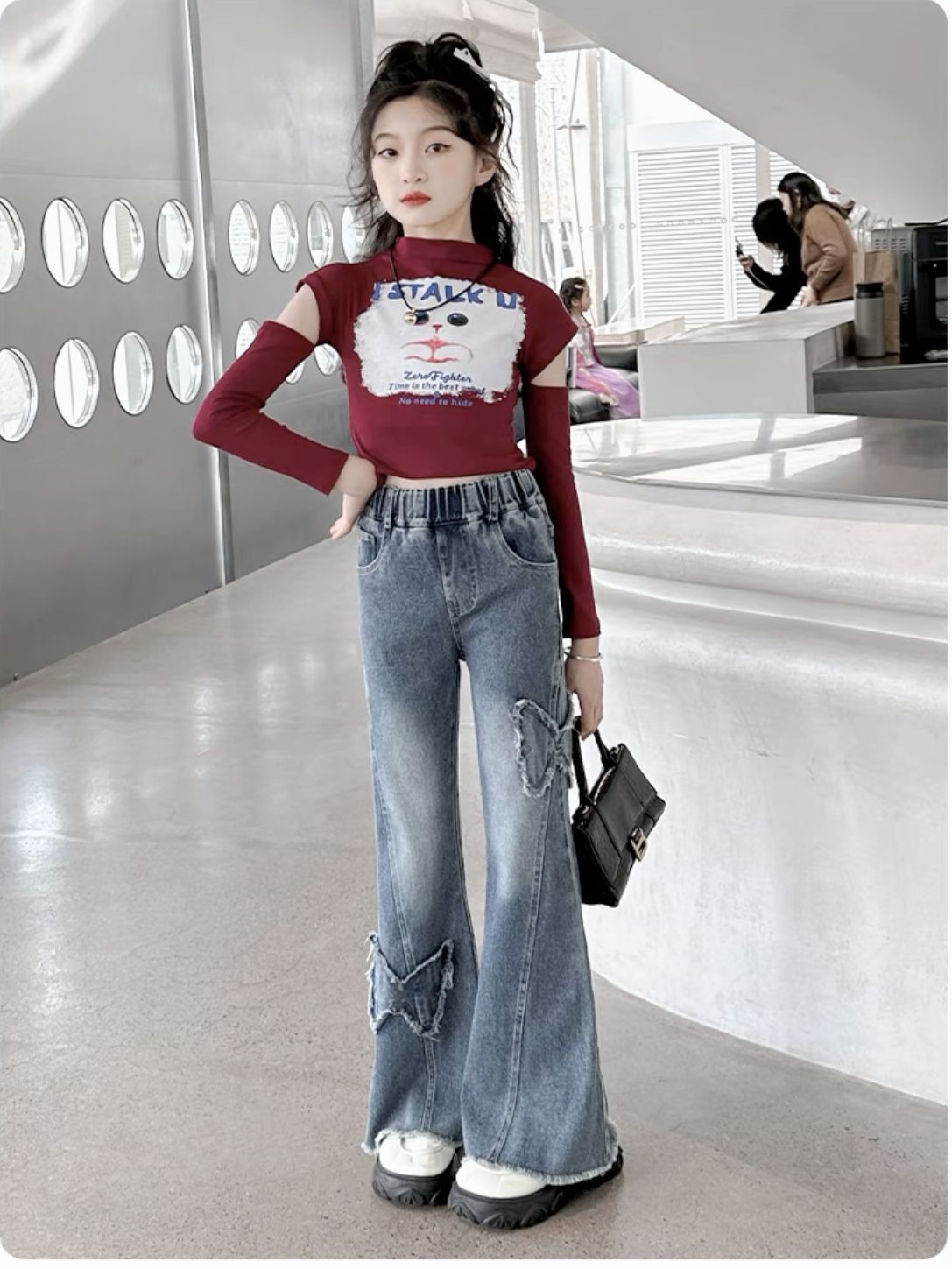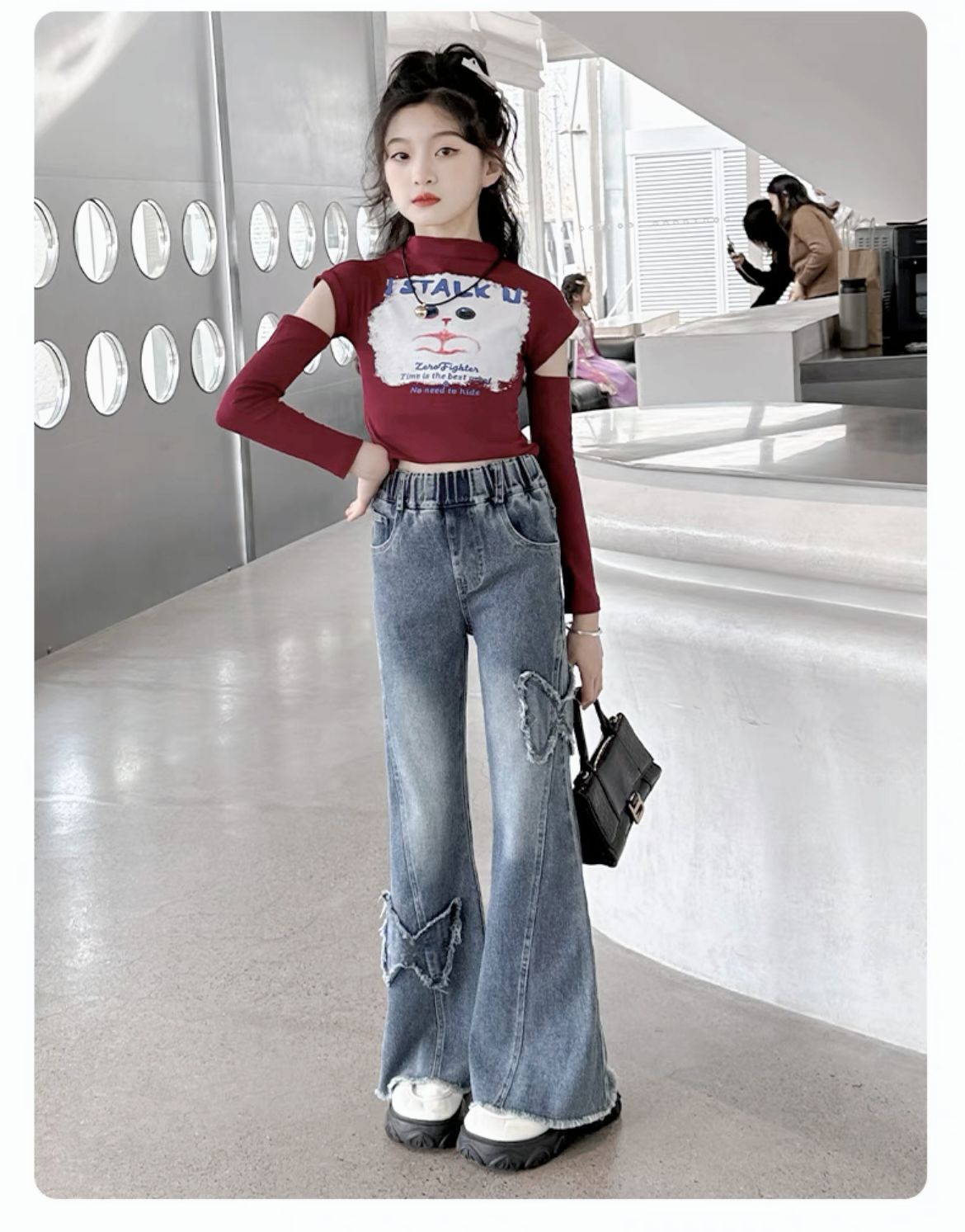 소녀 중 · 대형 어린이 2025 봄 청바지 어린이 청바지 얇은 스트레치 플라 바지 높은 허리 부드럽고 편안한스토어 가기