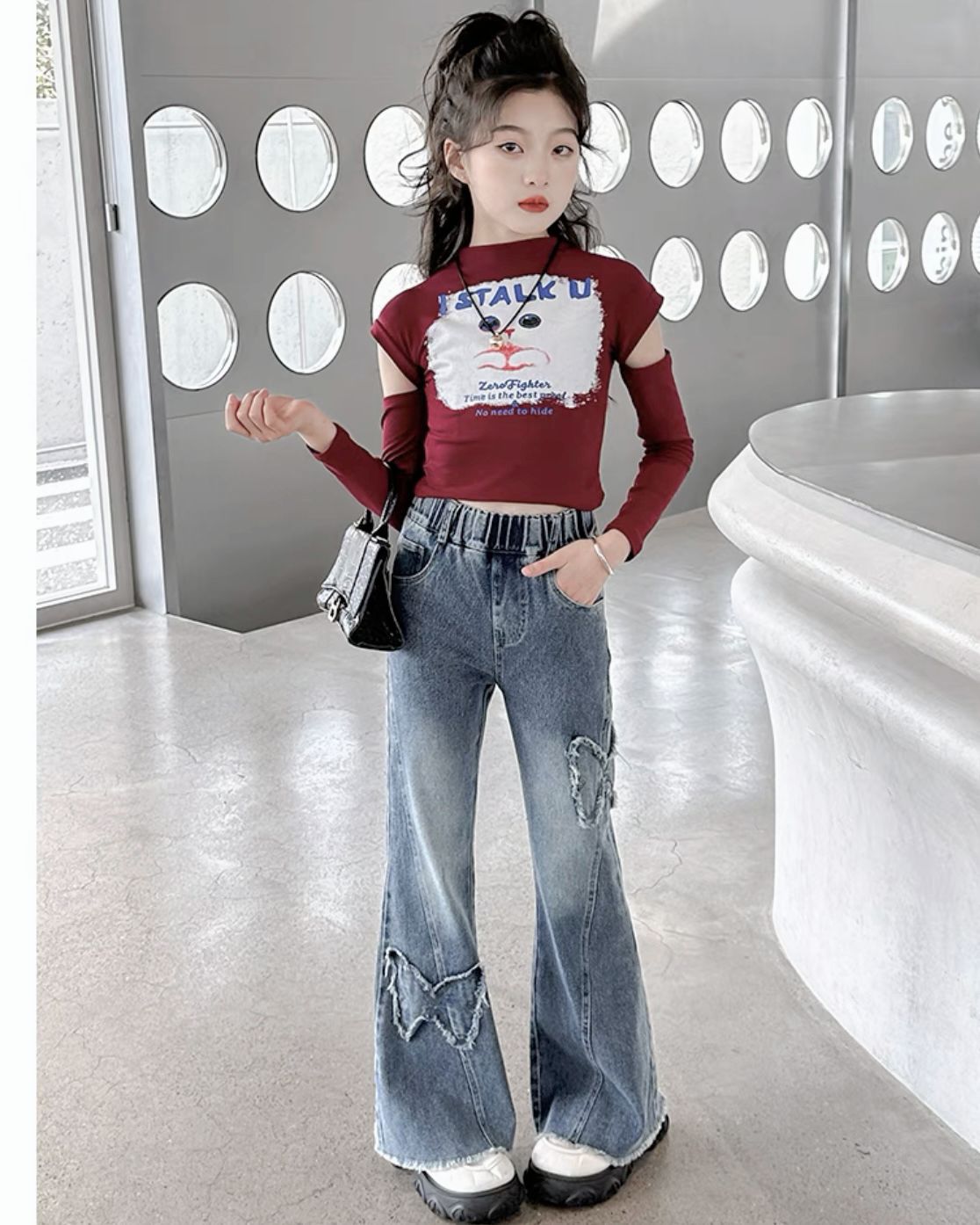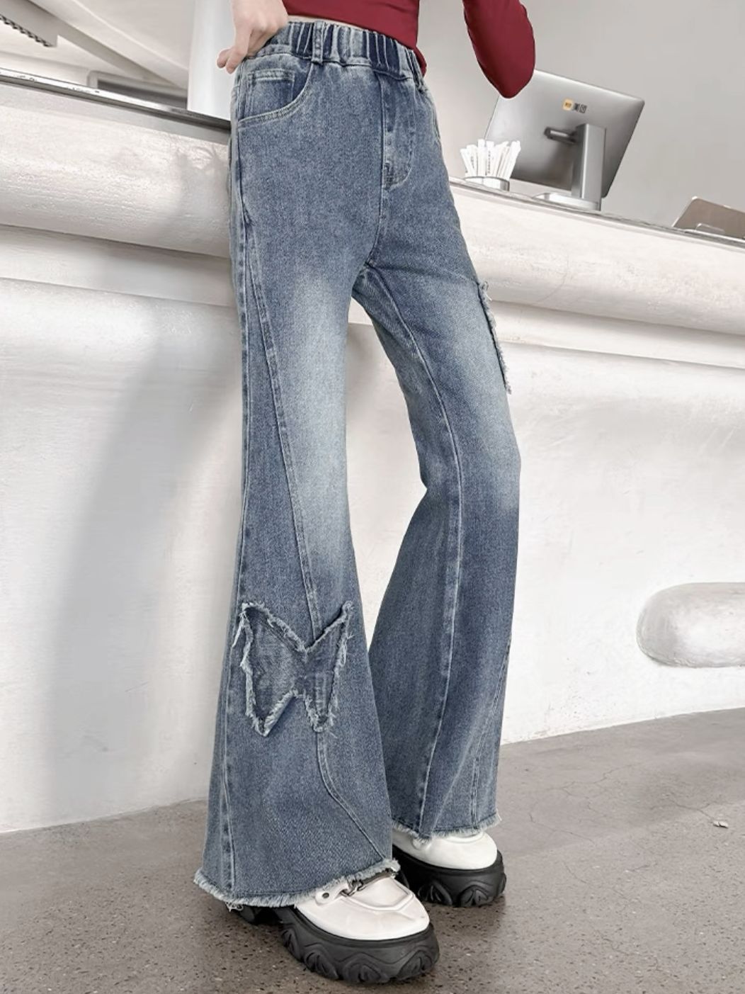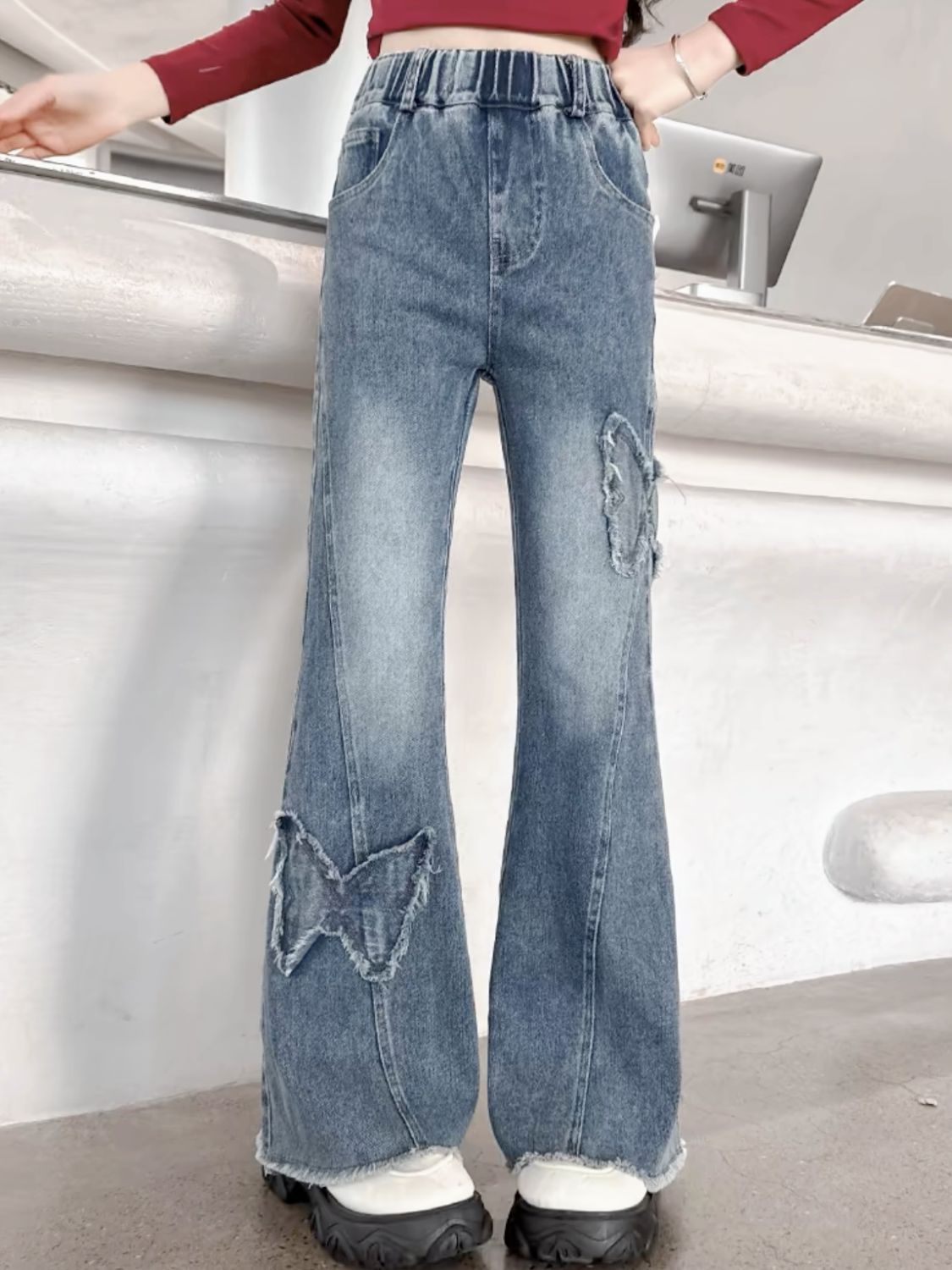 소녀 중 · 대형 어린이 2025 봄 청바지 어린이 청바지 얇은 스트레치 플라 바지 높은 허리 부드럽고 편안한