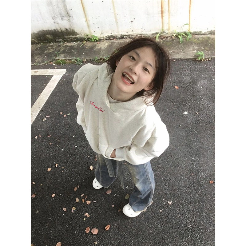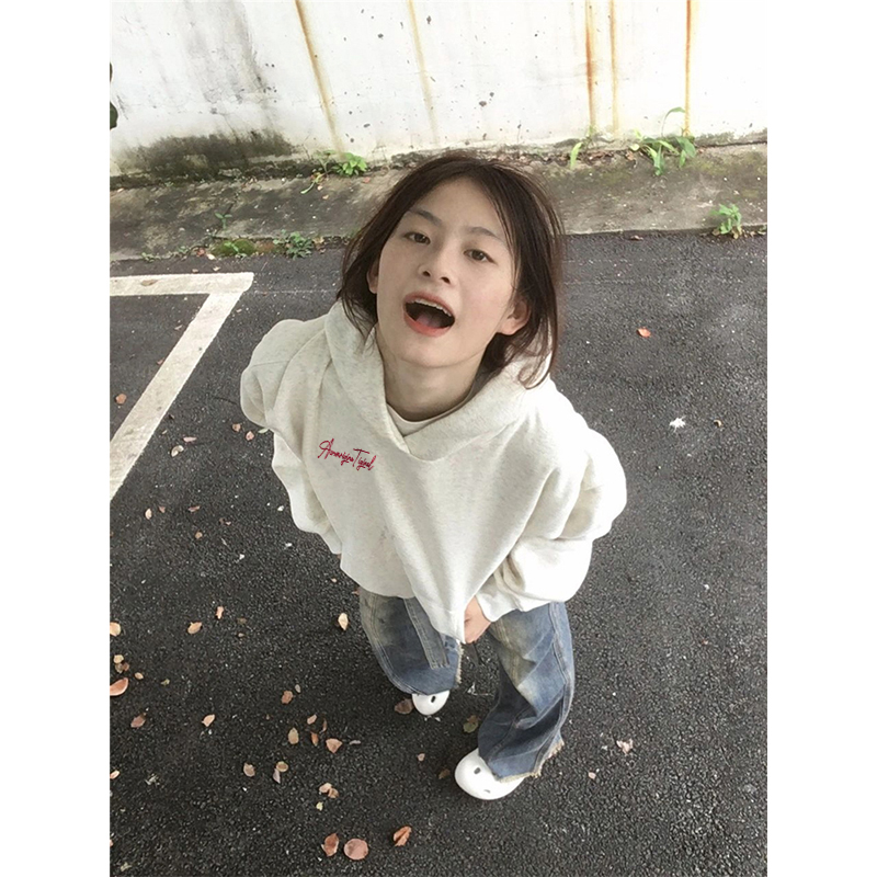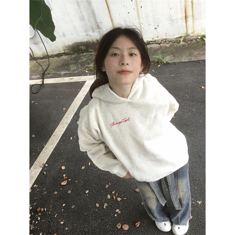 멜란지 그레이 후드 어깨 스웨트 셔츠 여성의 봄 가을 겨울 특대 한국 스타일 게으른 스타일 기모 두꺼운 재킷스토어 가기
