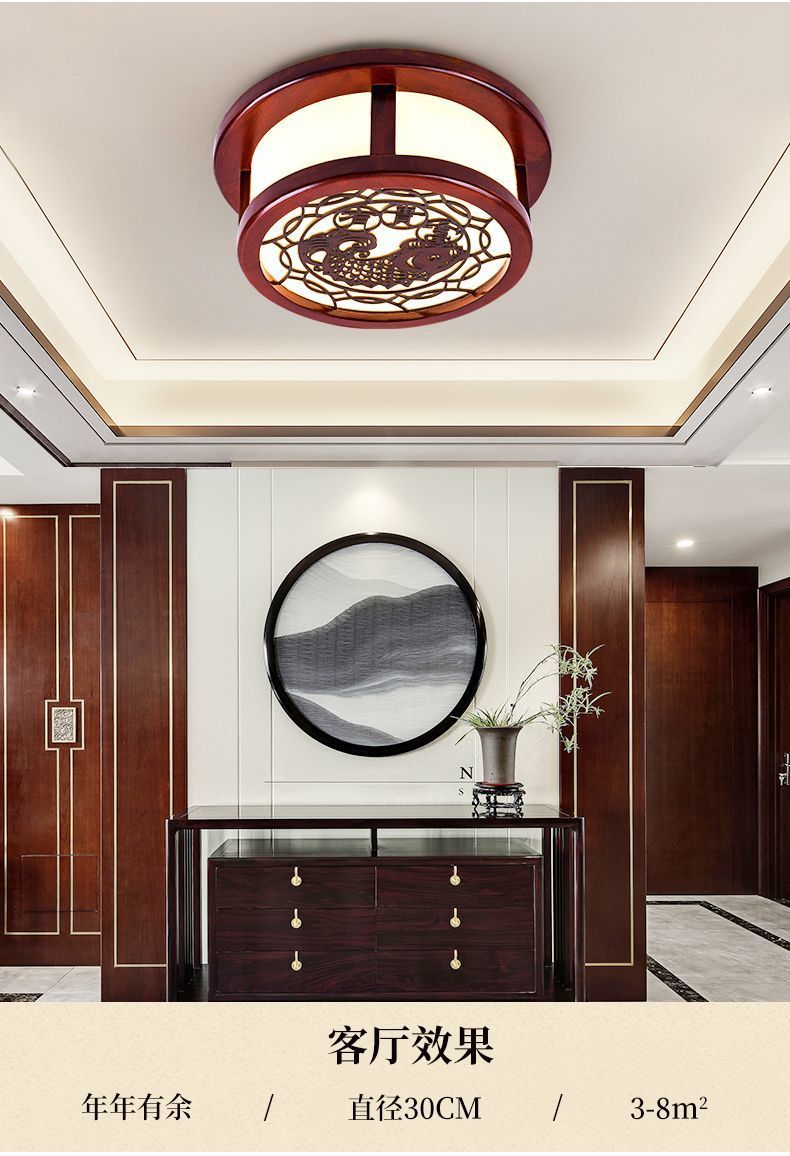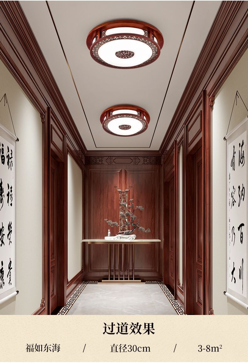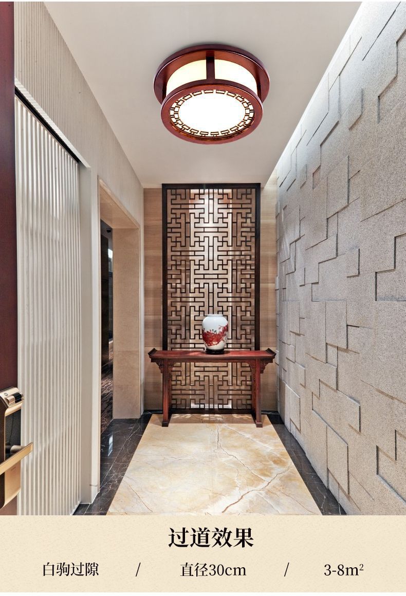 단단한 나무 새로운 중국 천장 램프 Led 발코니 램프 라운드 골동품 침실 복도 입구 나무 예술 램프 조명스토어 가기
