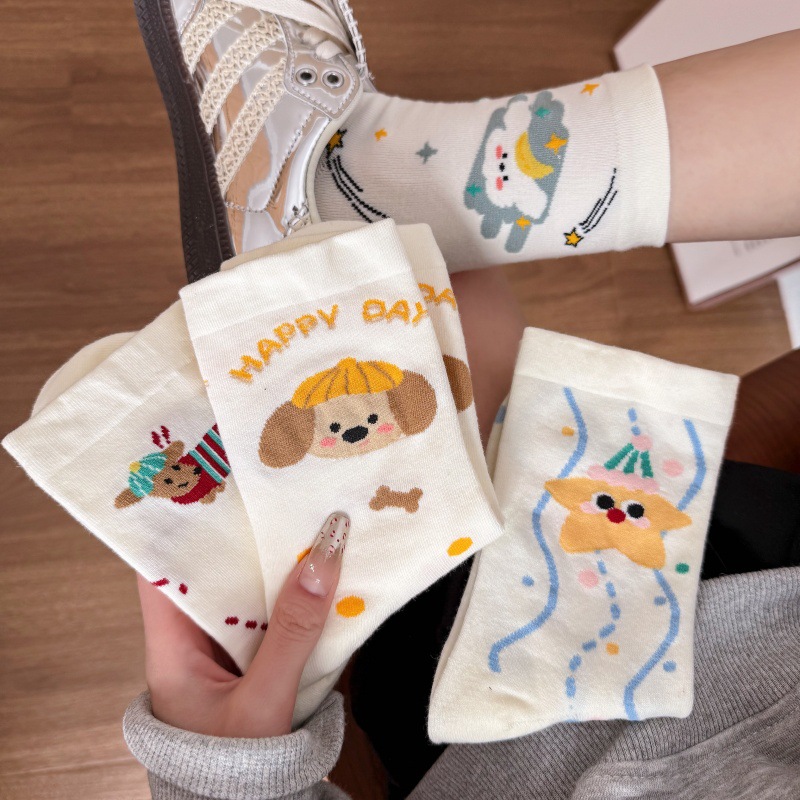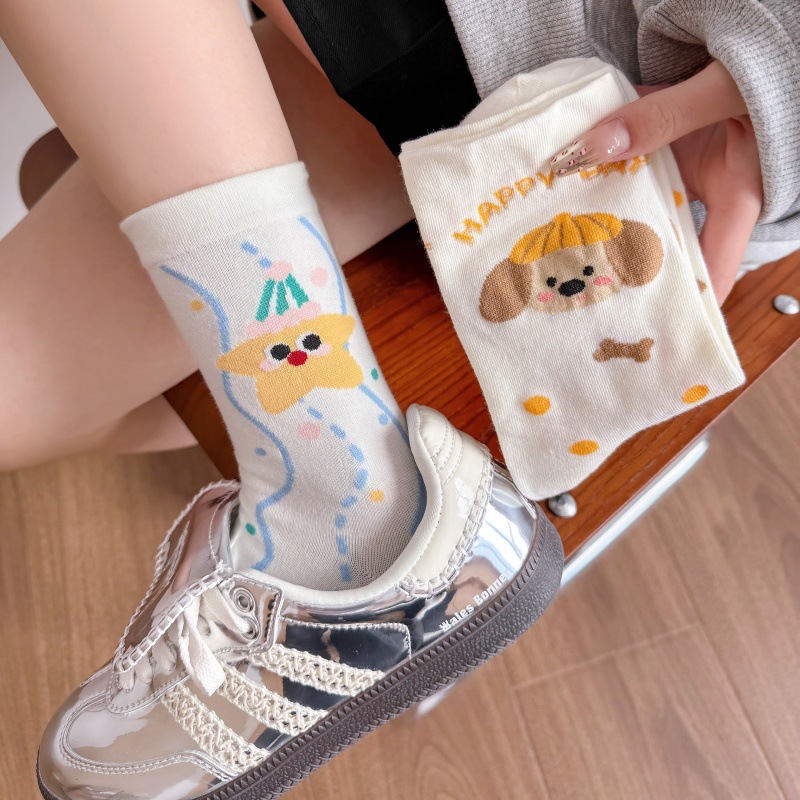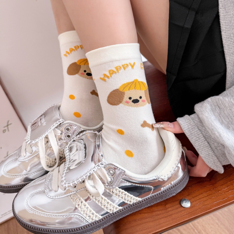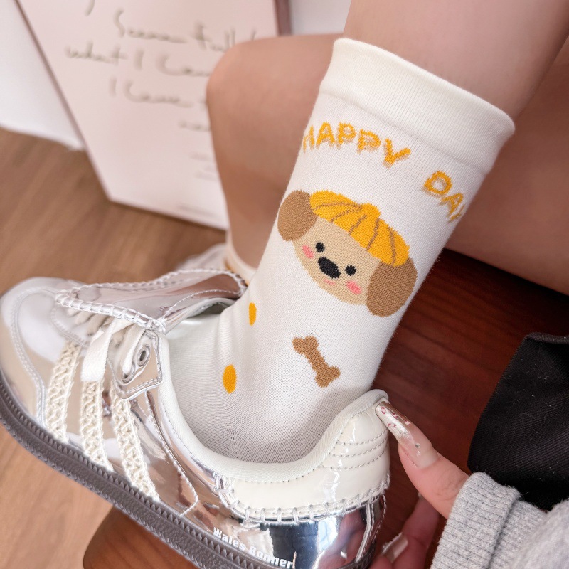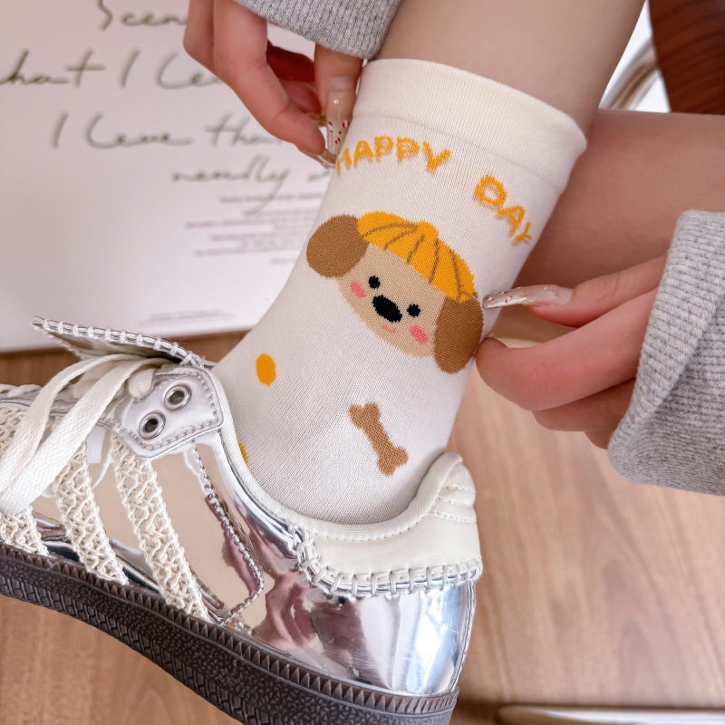 귀여운 강아지 양말 여성 봄과 여름 대학 스타일 일본식 만화 미드 튜브 양말 한국식 올매치 학생 퓨어 코튼 양말 트렌디스토어 가기