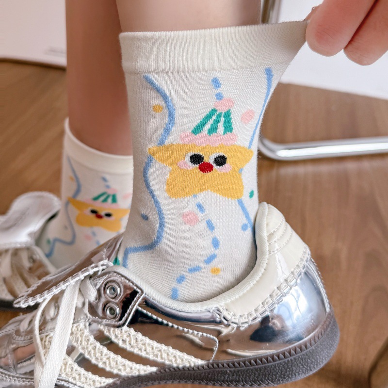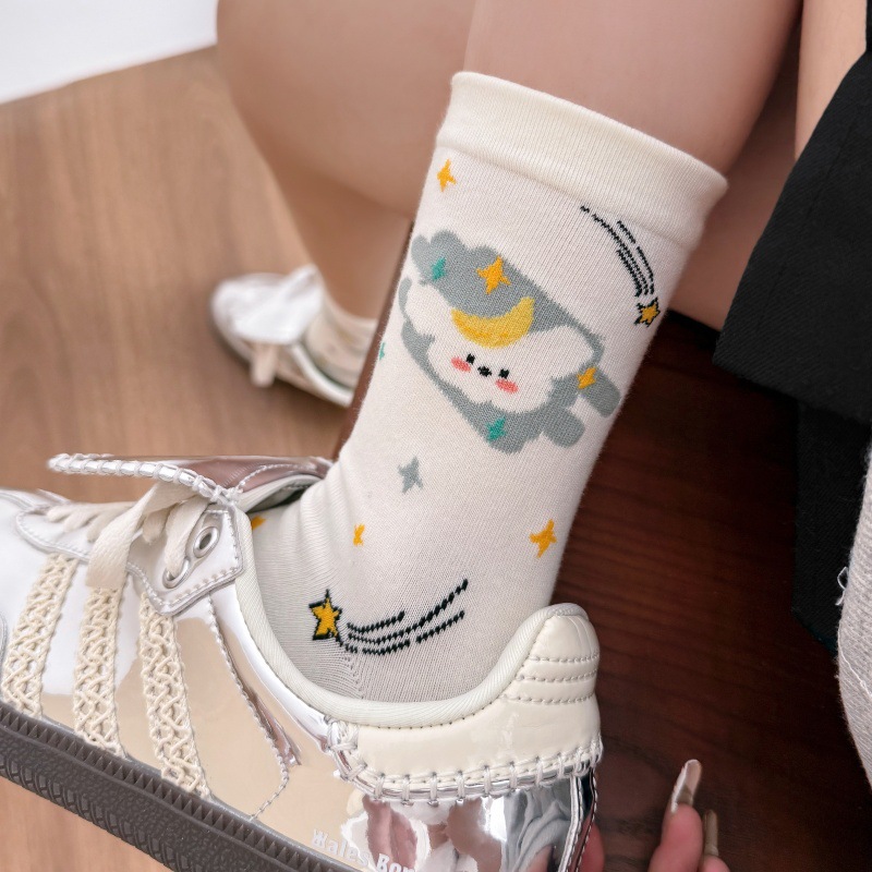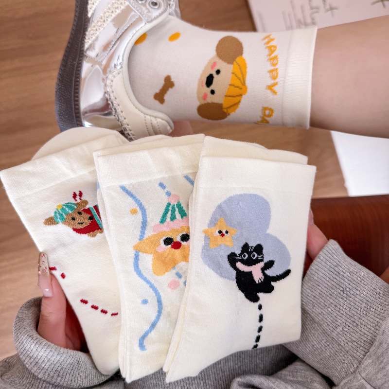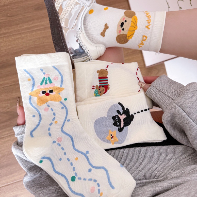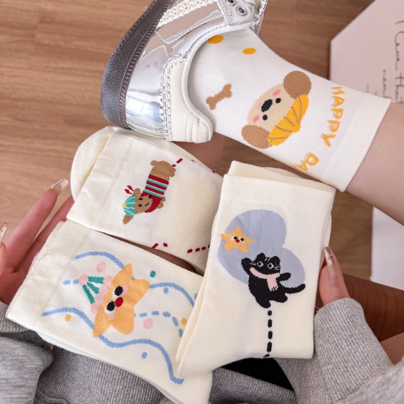 귀여운 강아지 양말 여성 봄과 여름 대학 스타일 일본식 만화 미드 튜브 양말 한국식 올매치 학생 퓨어 코튼 양말 트렌디스토어 가기