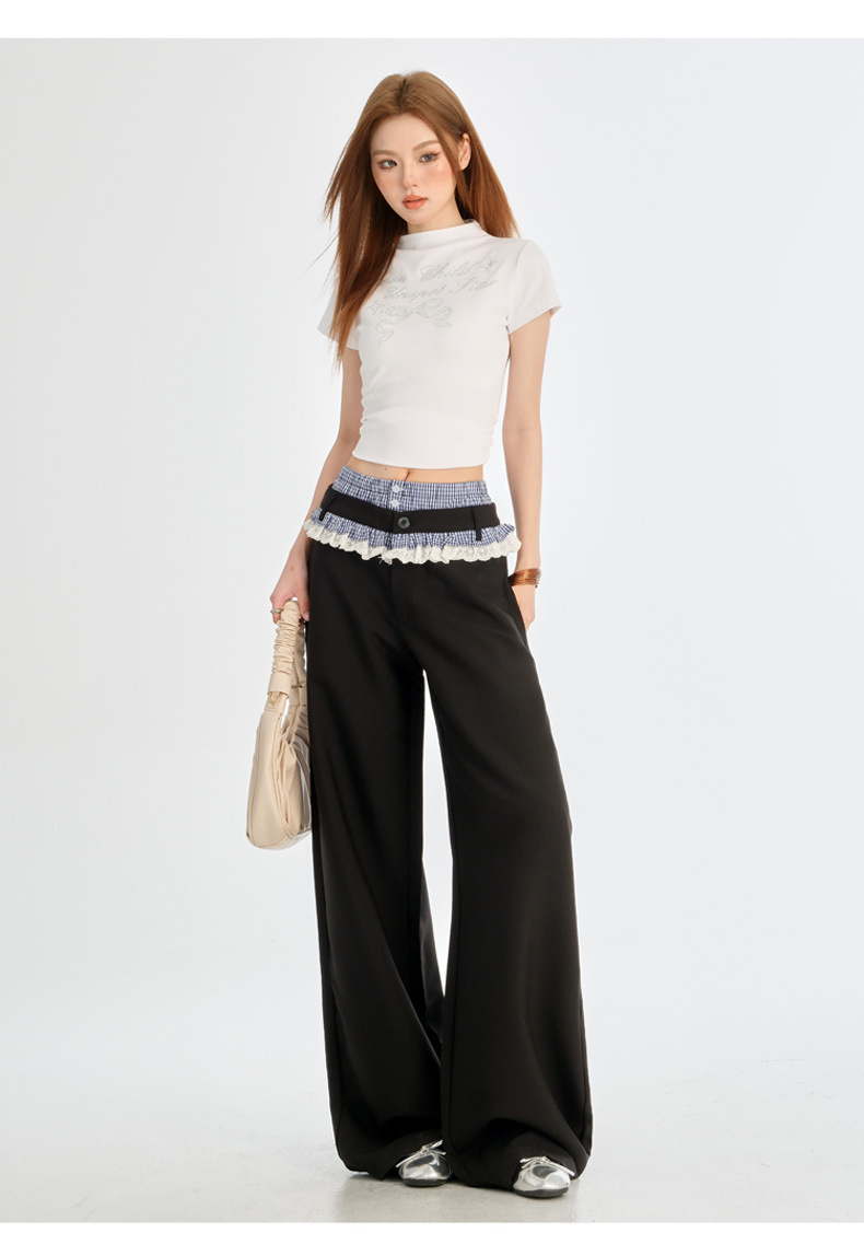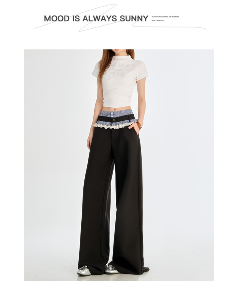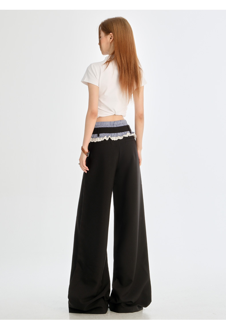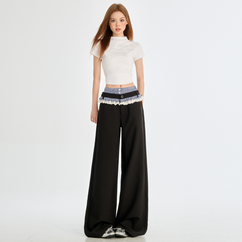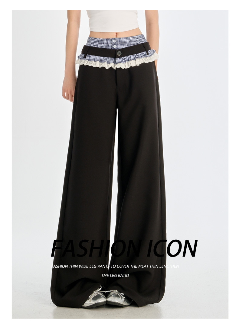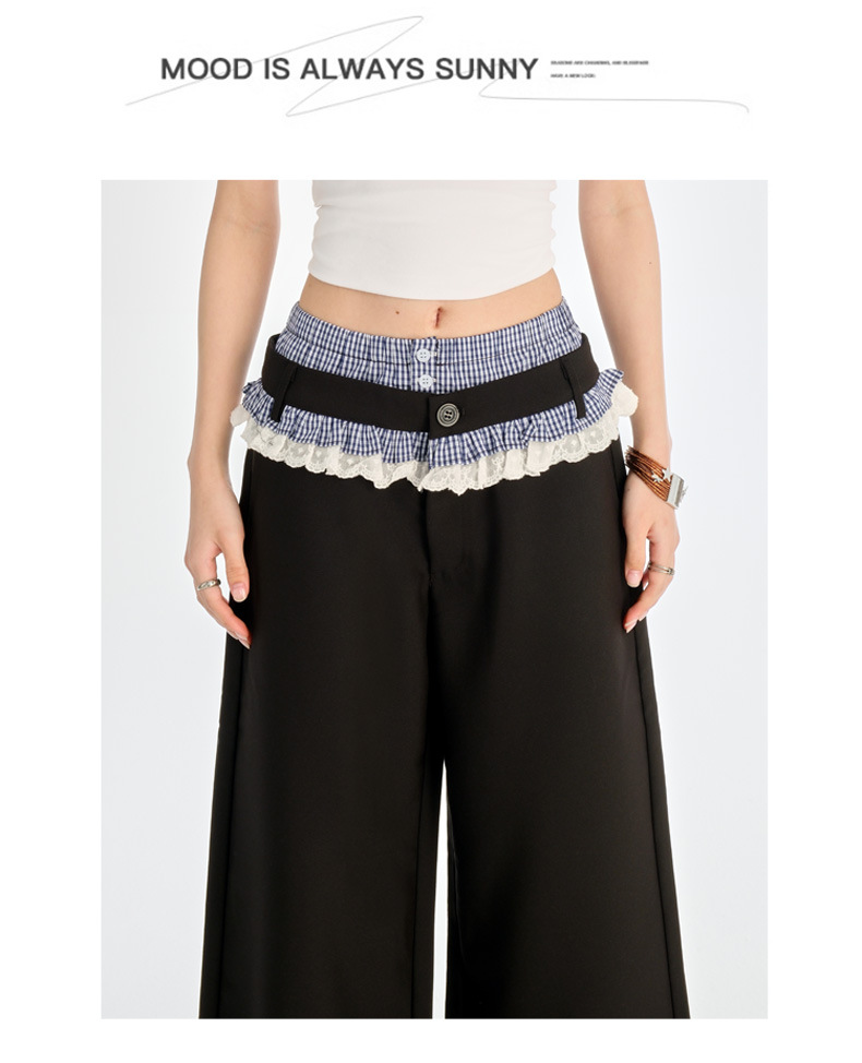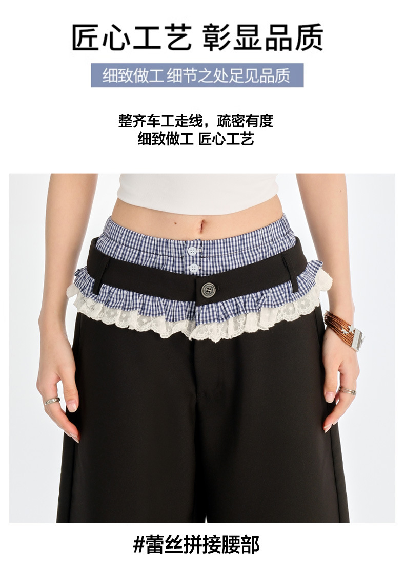 바느질 레이스 바지 여성의 새로운 더블 허리 세트 바지 고급 루즈 캐주얼 바지 & 긴 바지스토어 가기