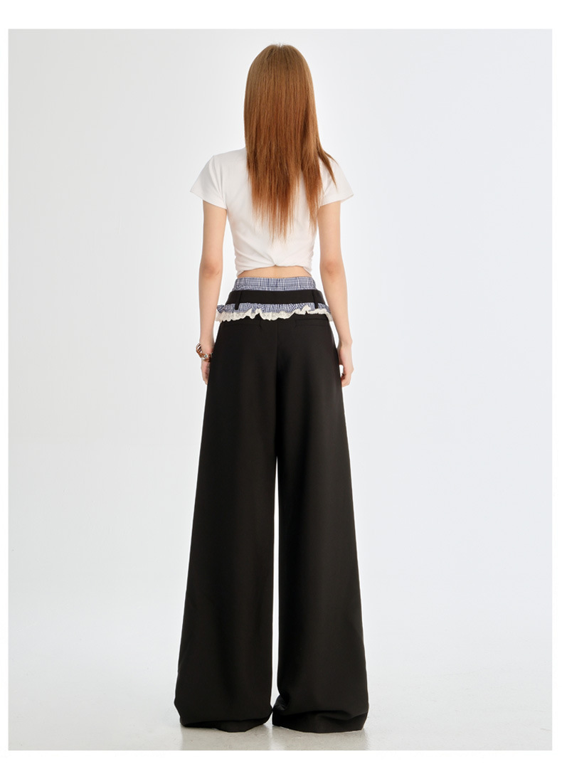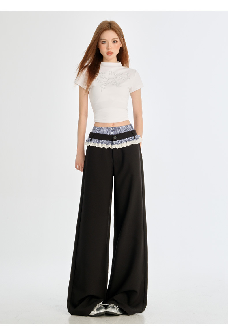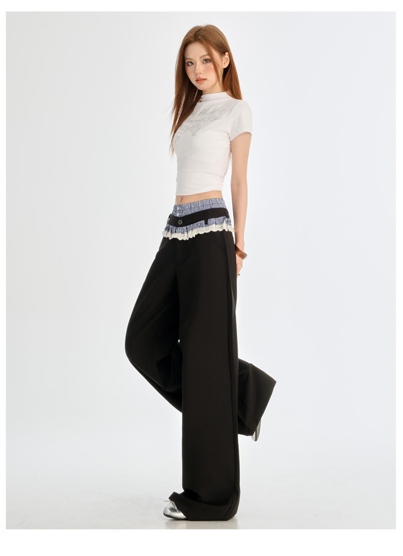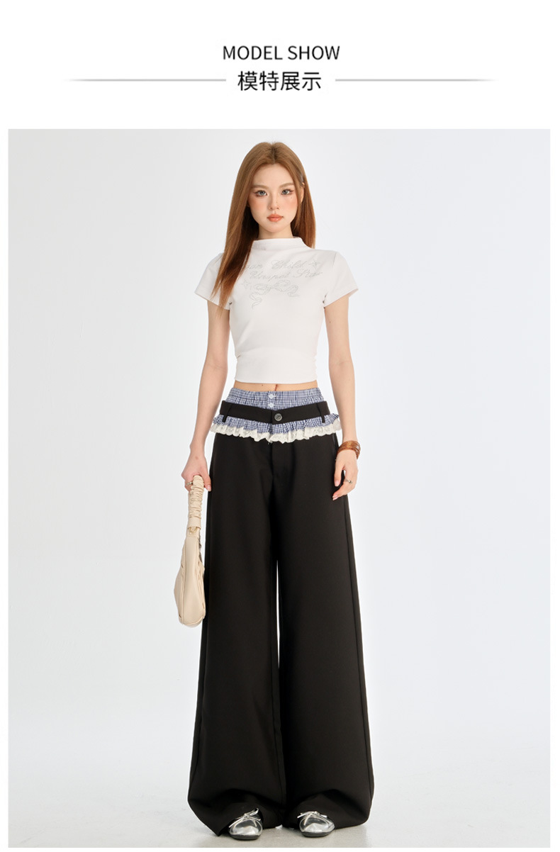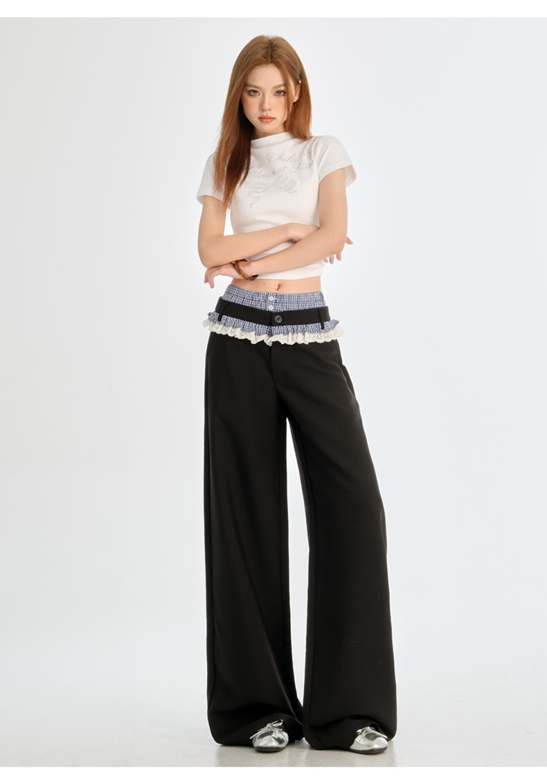 바느질 레이스 바지 여성의 새로운 더블 허리 세트 바지 고급 루즈 캐주얼 바지 & 긴 바지스토어 가기