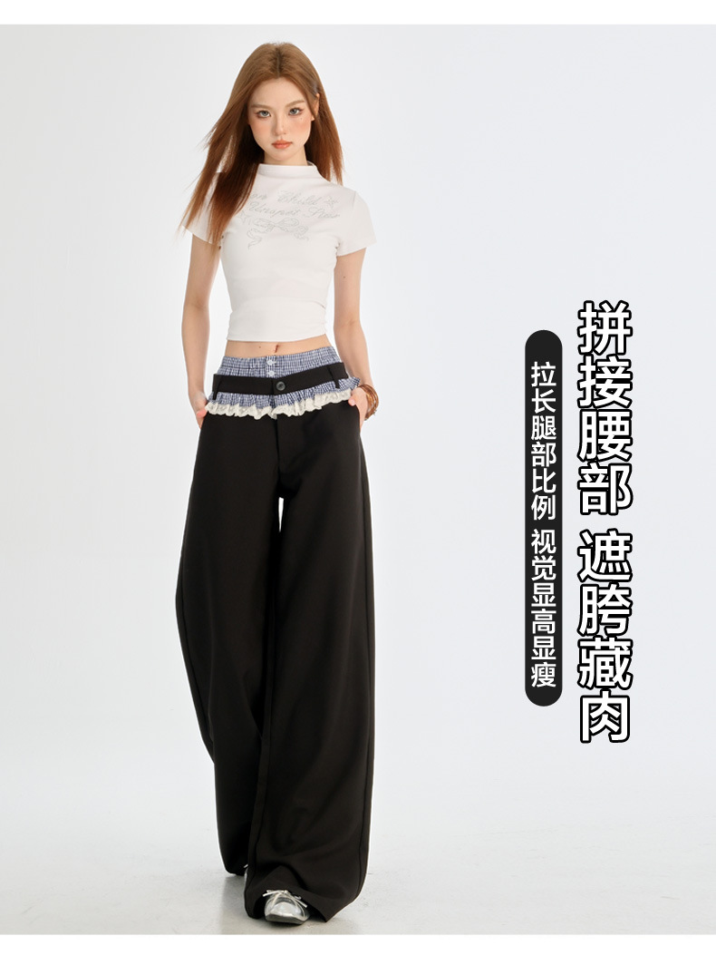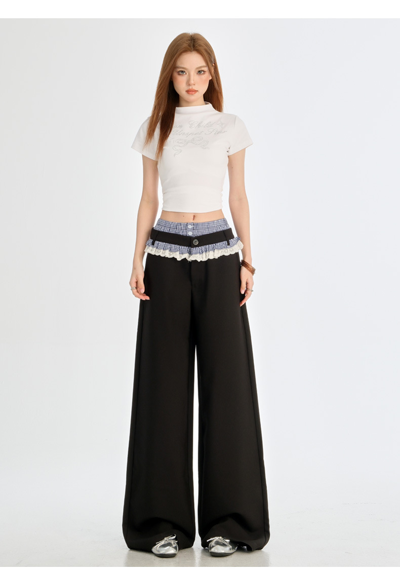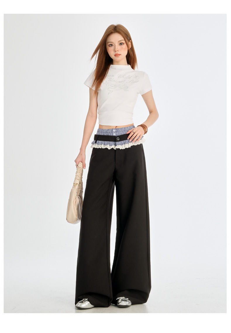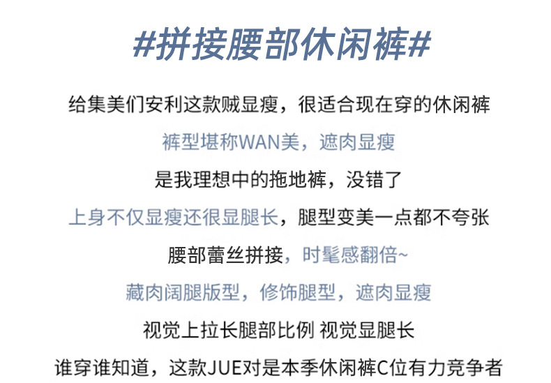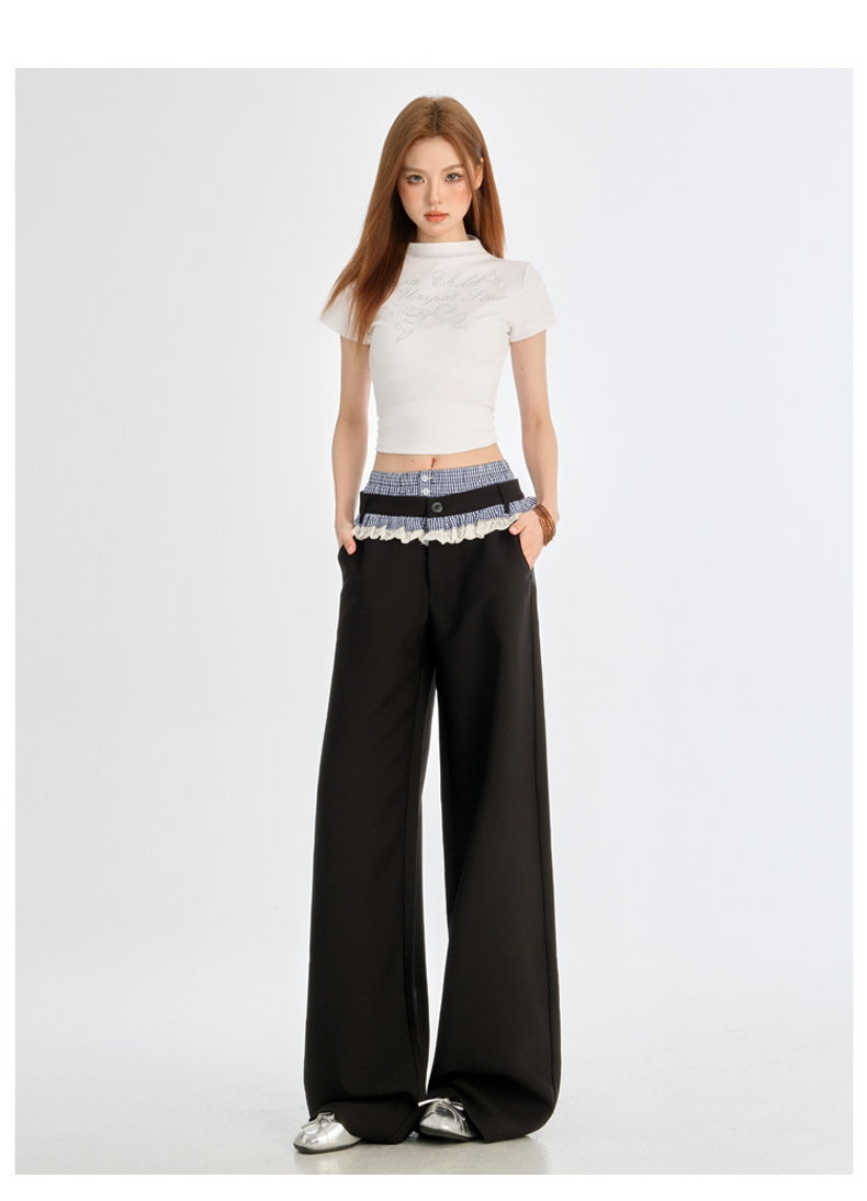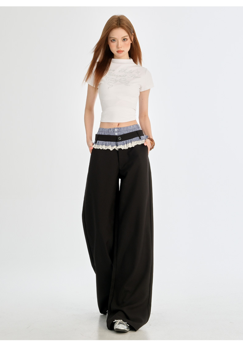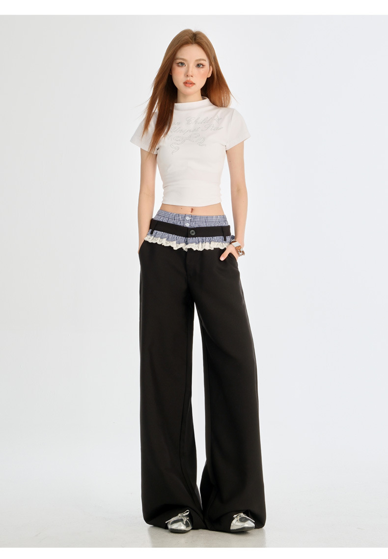 바느질 레이스 바지 여성의 새로운 더블 허리 세트 바지 고급 루즈 캐주얼 바지 & 긴 바지스토어 가기