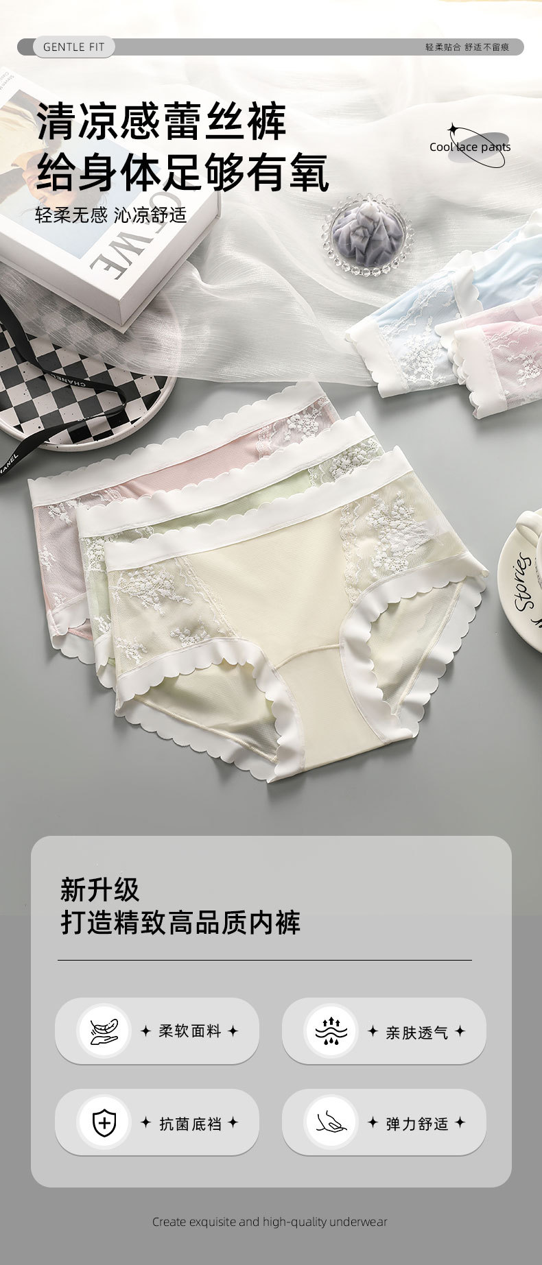 아이스 실크 여성 속옷 봄과 여름 새로운 시원한 느낌의 마스크 바지 통기적이고 편안한 소녀의 추적없는 삼각형 반바지 중간 허리스토어 가기
