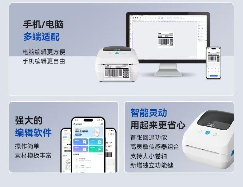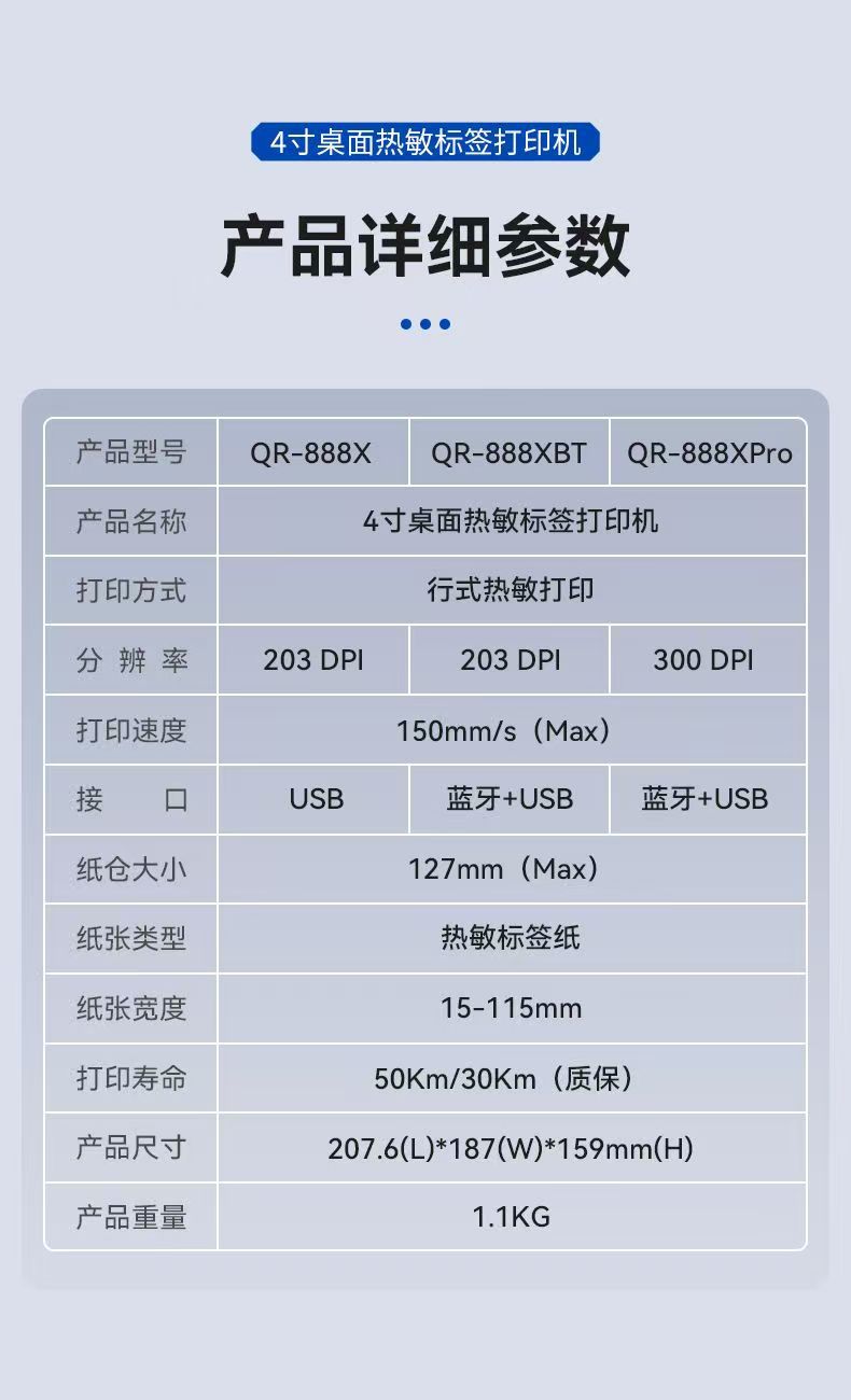 Qirui QR-888X 국경 간 전자 상거래 라벨 프린터 Bluetooth HD 300dpi Amazon 바코드 프린터스토어 가기