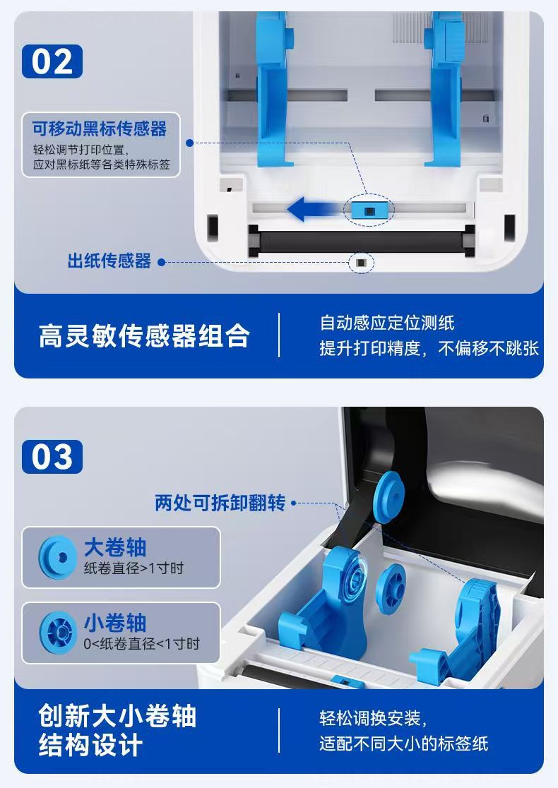 • {203dpi 표준 화질} QR-888XBT USB+Bluetooth, 데스크탑 버전, 흰색+파란색