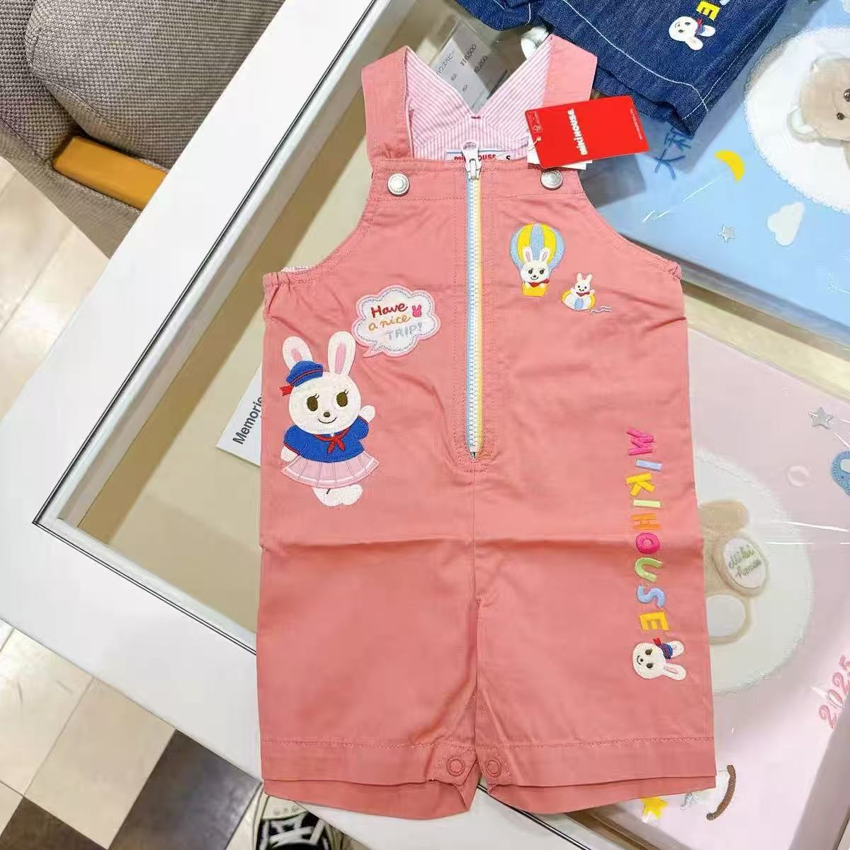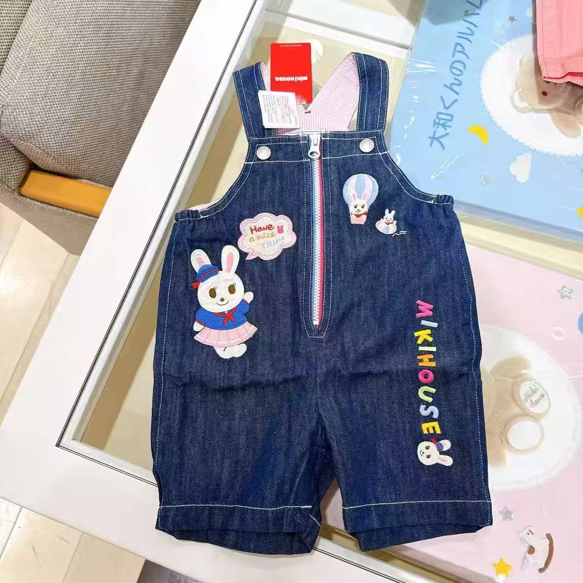 【재고 있음】25 여름 유행 브랜드 고급 아동복 미키 토끼 패치 워크 멜빵바지 7부 바지