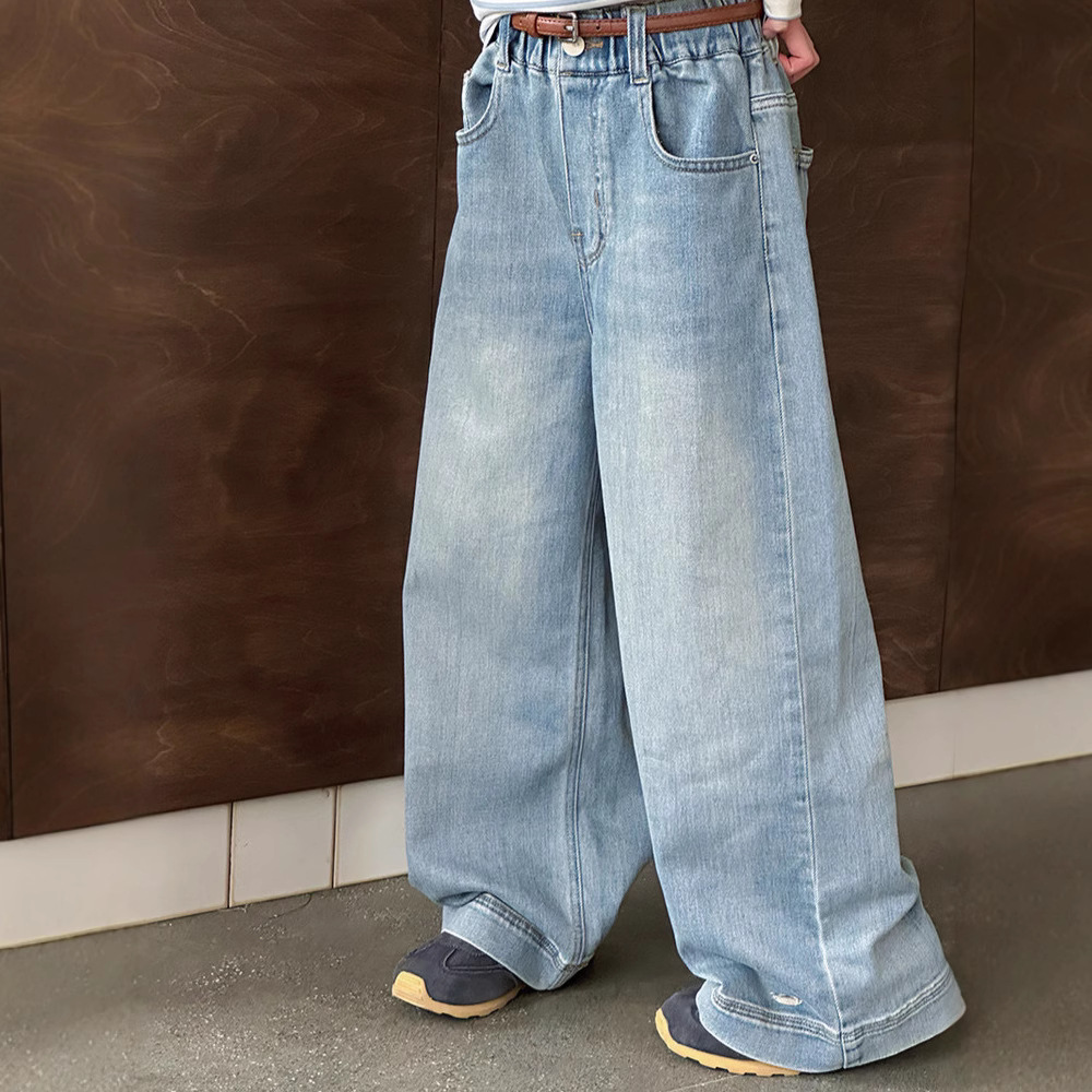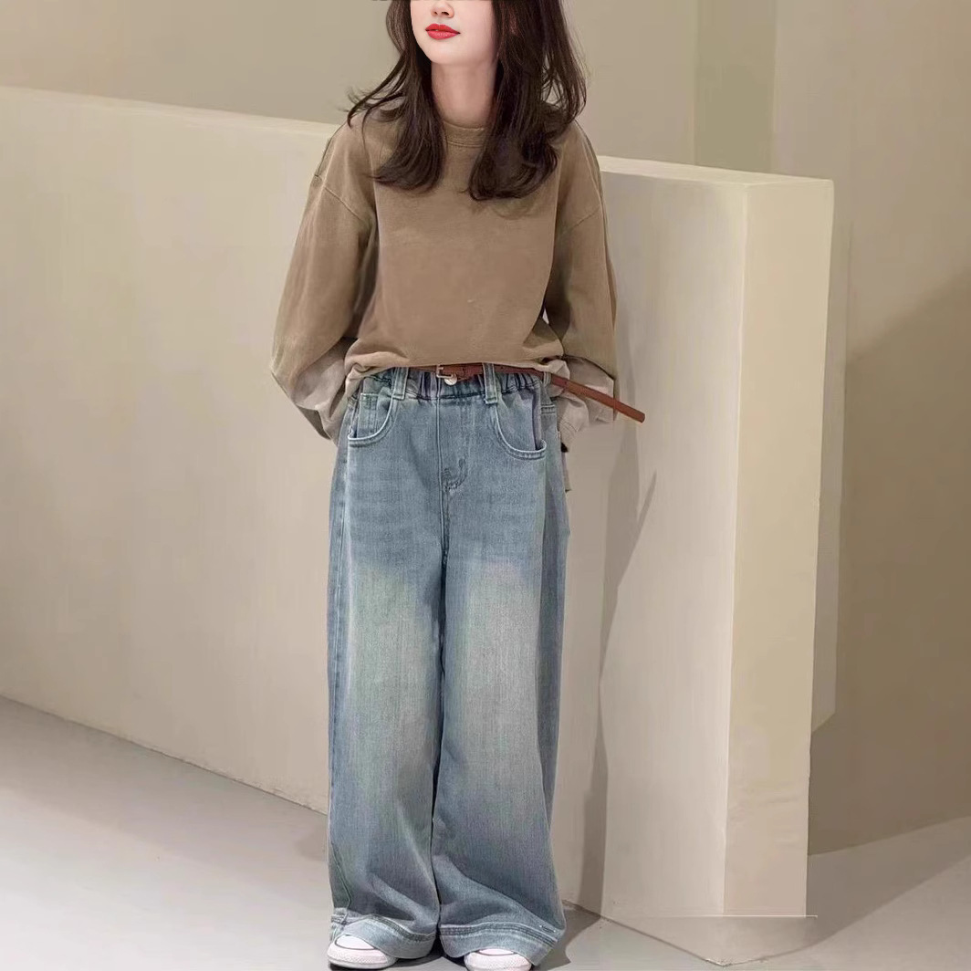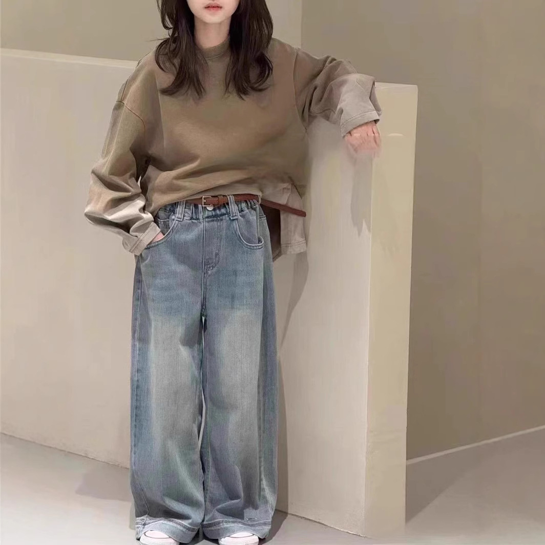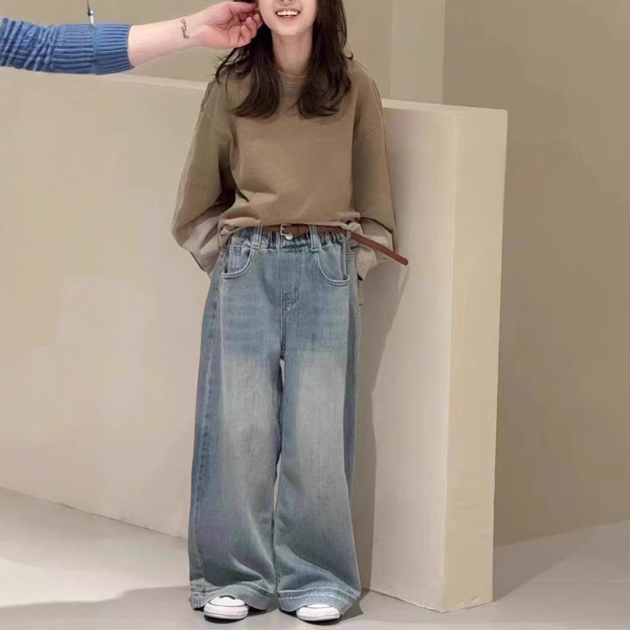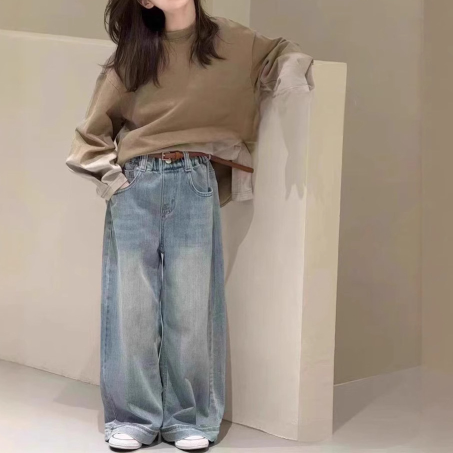 소녀 라이트 컬러 청바지 봄과 가을 2025 새로운 어린이 스트레이트 와이드 다리 바지 봄 소녀의 큰 어린이 바지 느슨한스토어 가기