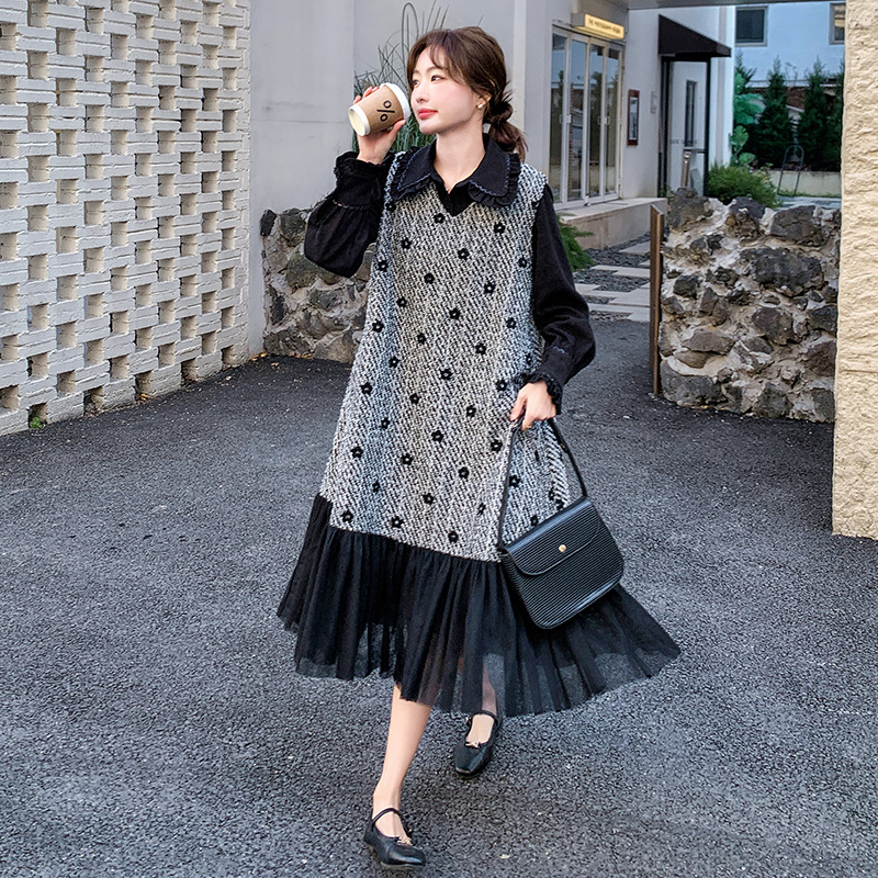 실제 촬영 패션 인형 칼라 셔츠 세트 스커트 2025 새로운 인쇄 조끼 메쉬 스티칭 원피스 투피스 세트스토어 가기