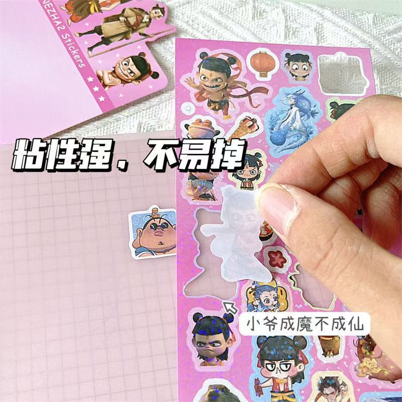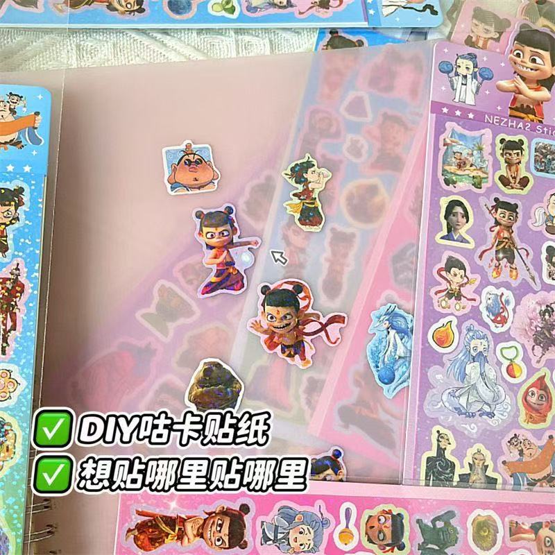 Nezha Naohai 레이저 손 계정 스티커 어린이 만화 DIY 컷-무료 구오 카드 스티커 장식 재료 스티커