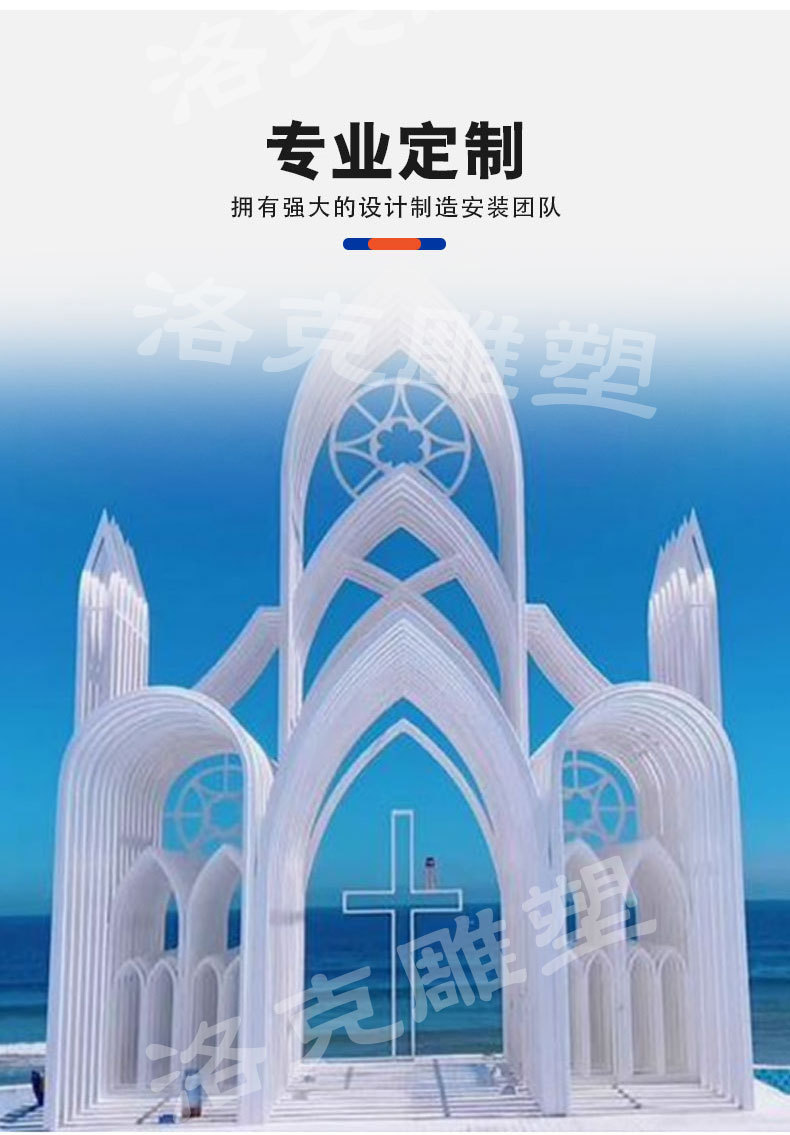 맞춤형 스테인레스 스틸 웨딩 풍경 조각 창조적 인 대형 금속 인터넷 레드 교회 조각 공원 예술 조각스토어 가기