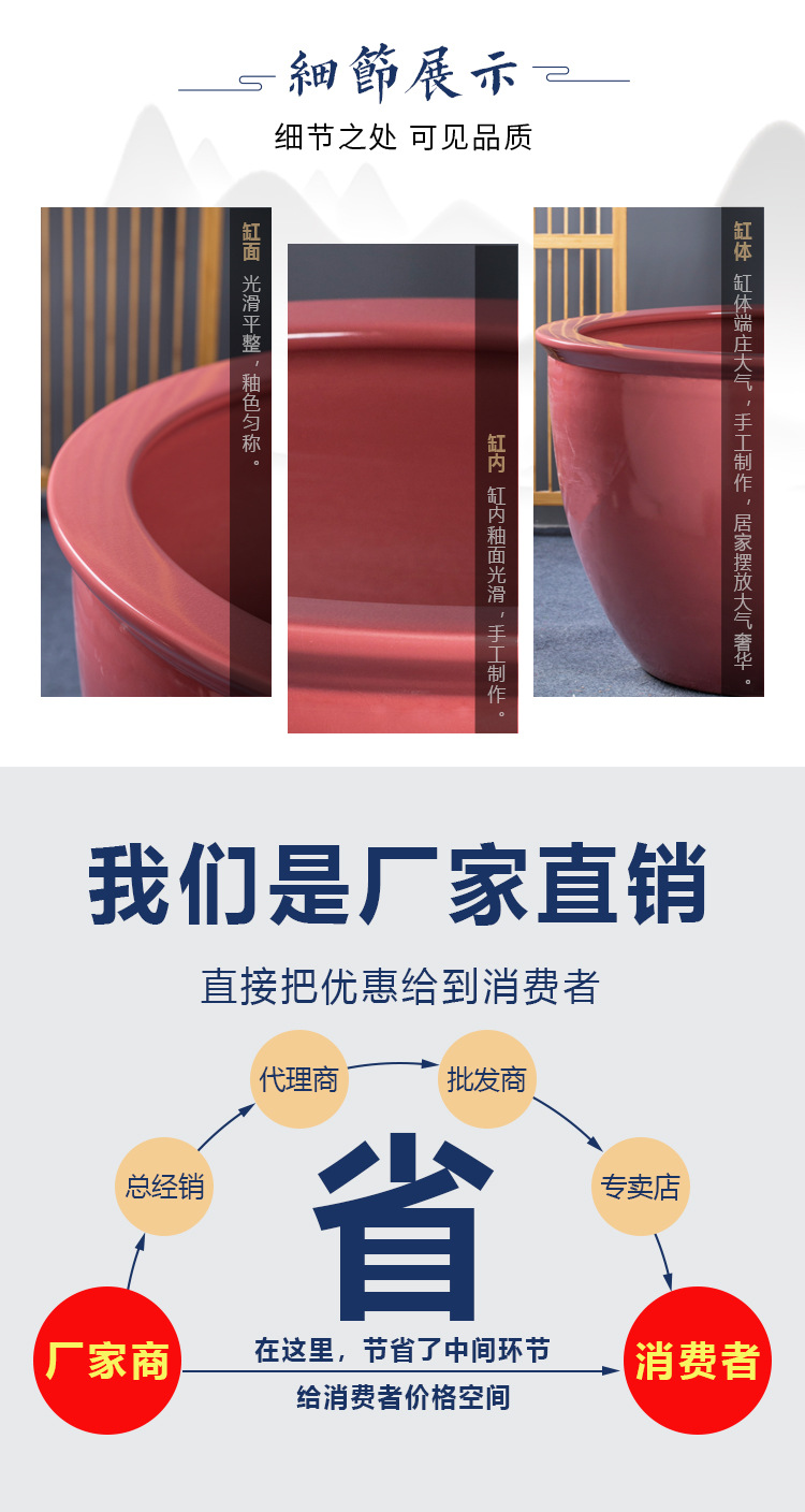 경덕진 핑크 유약 도자기 대형 수조, 전통 방식으로 만든 물고기 양식 수조, 잉어, 연꽃, 수련 수조, 전통 정원용 수조 도매스토어 가기