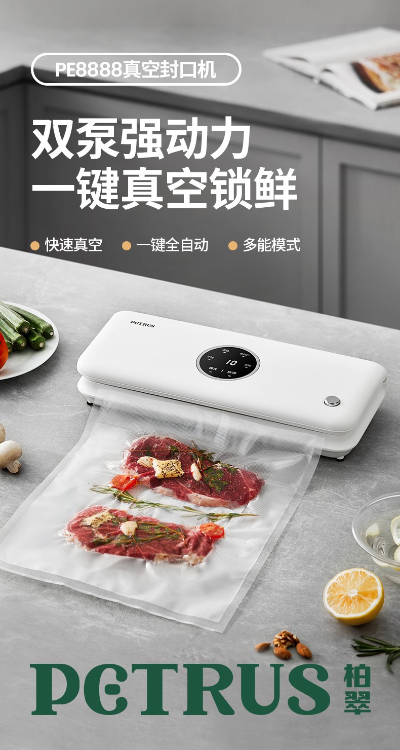 Baicui 진공 밀봉 기계 가정용 식품 보존 진공 기계 습식 및 건식 이중 사용 프레스 프리 PE8888