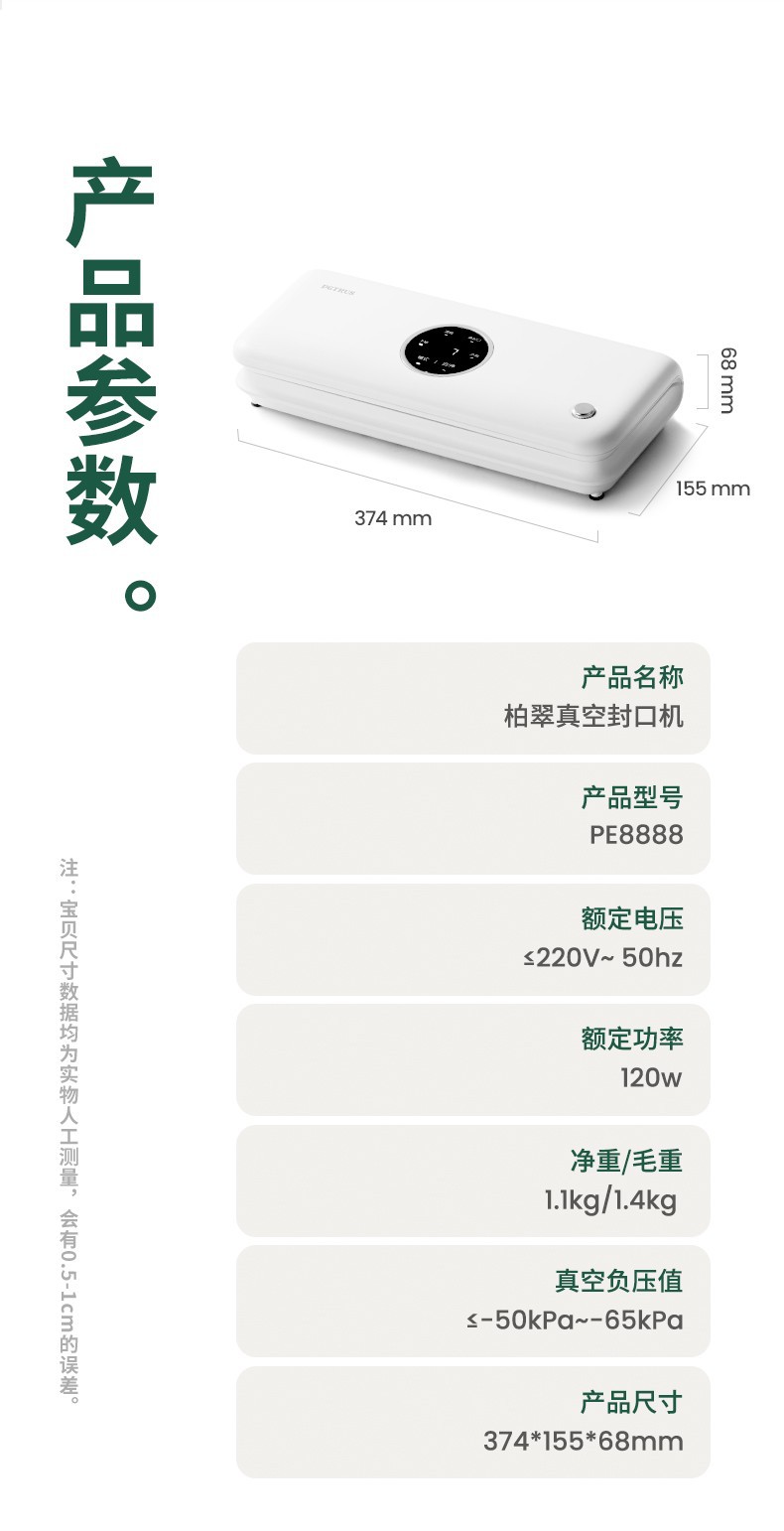 Baicui 진공 밀봉 기계 가정용 식품 보존 진공 기계 습식 및 건식 이중 사용 프레스 프리 PE8888스토어 가기