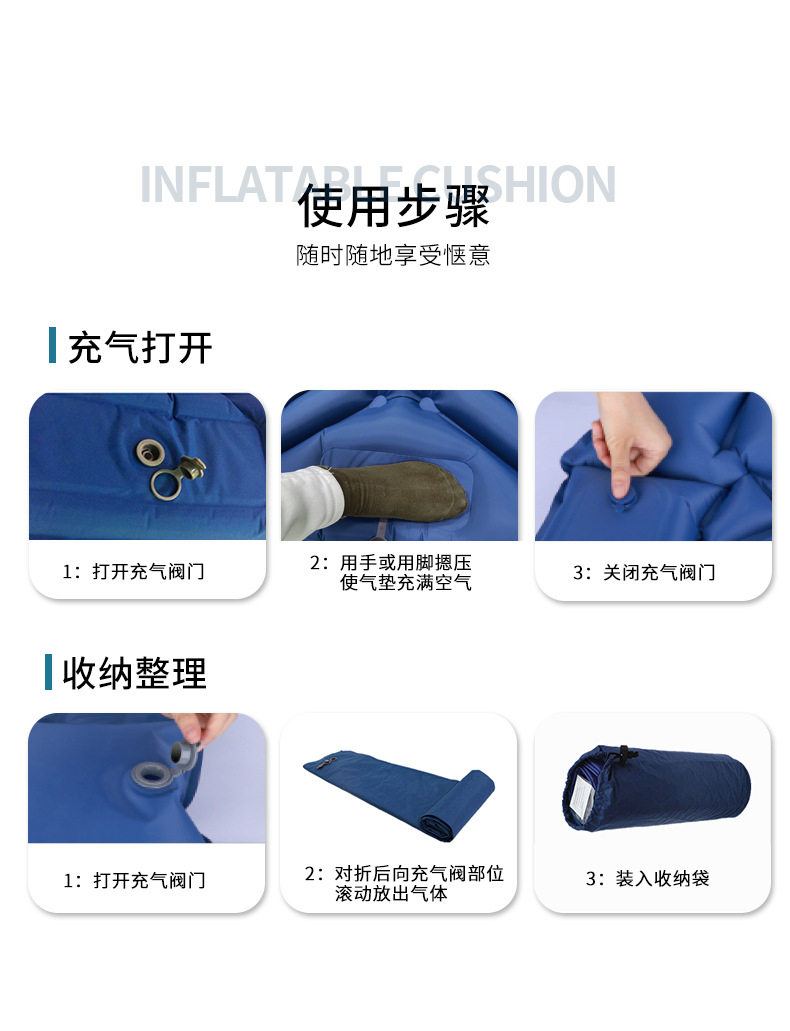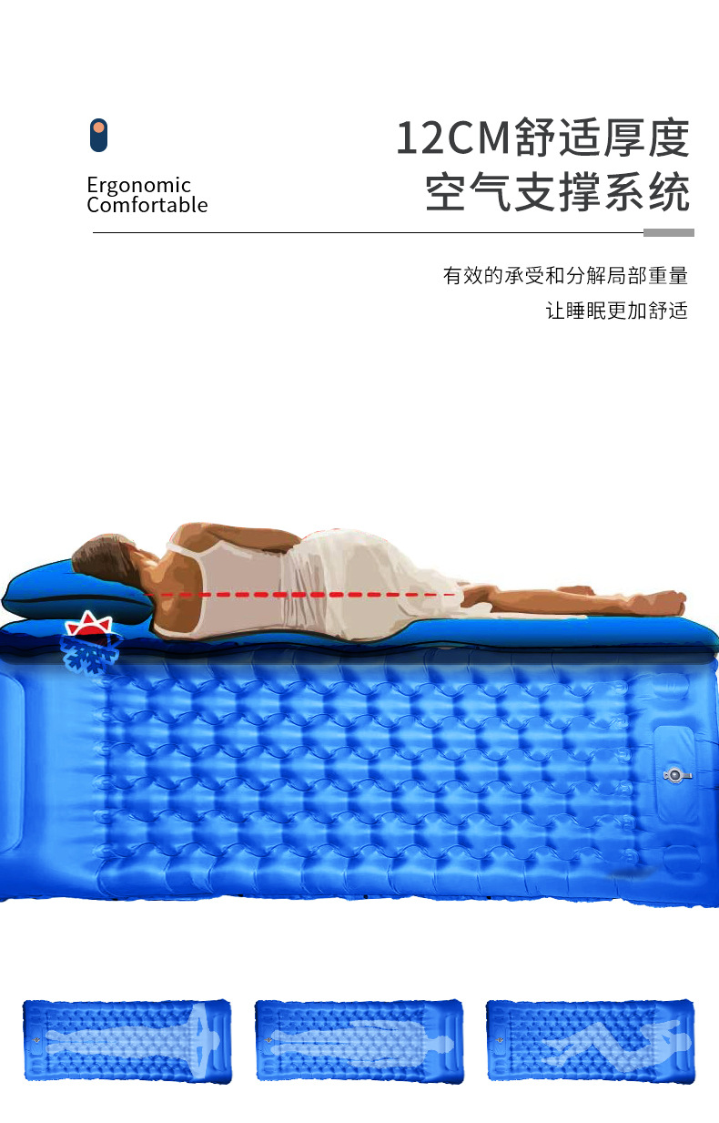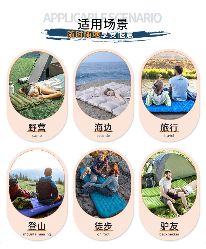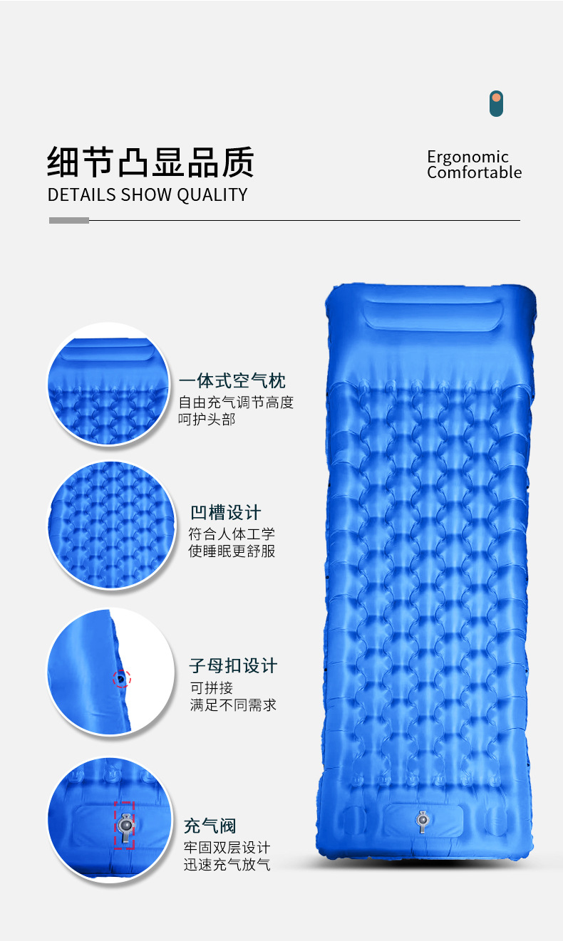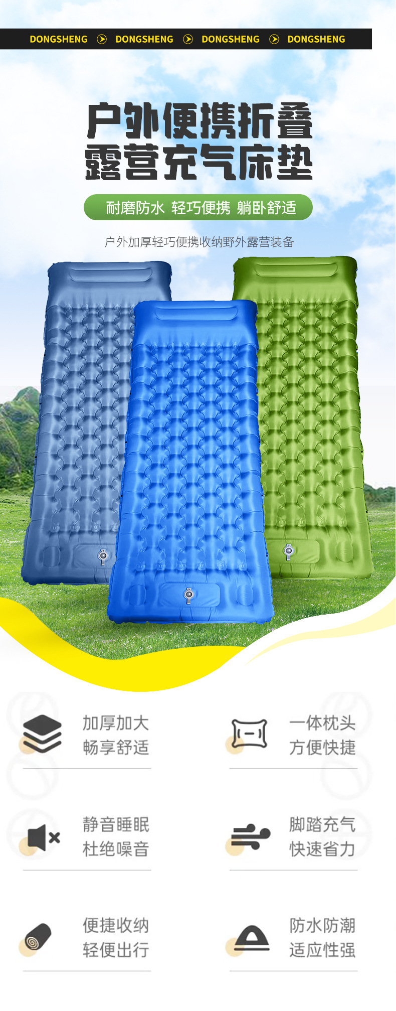 아마존 새로운 야외 팽창식 매트리스 캠핑 두꺼운 수분 방지 매트 발 걸음 국경 야외 팽창식 매트 수면 매트