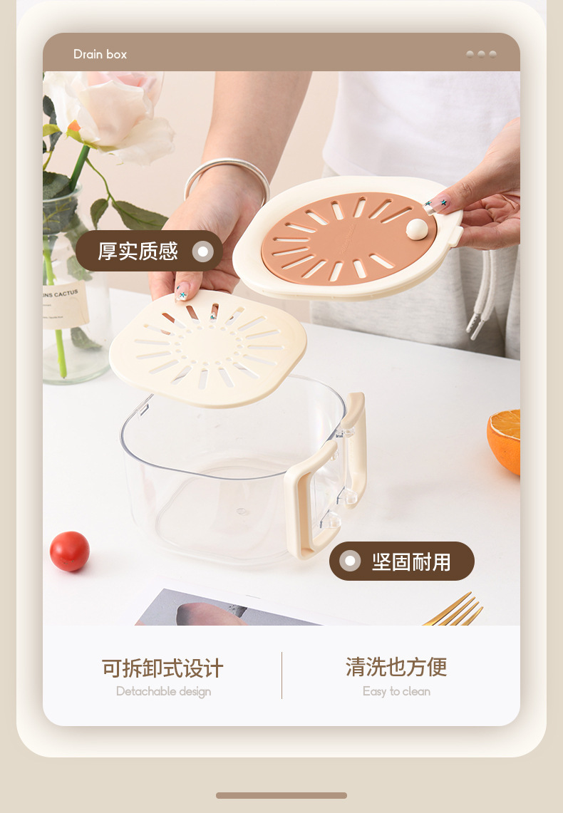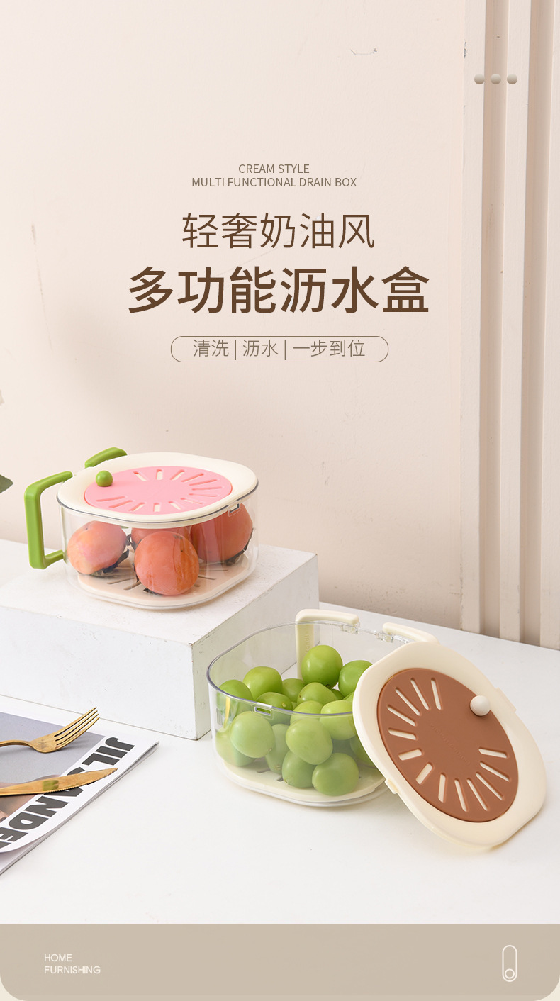 다기능 배수 접이식 손잡이 과일 저장 상자 뚜껑 야채 배수 더블 레이어 신선한 보관 상자