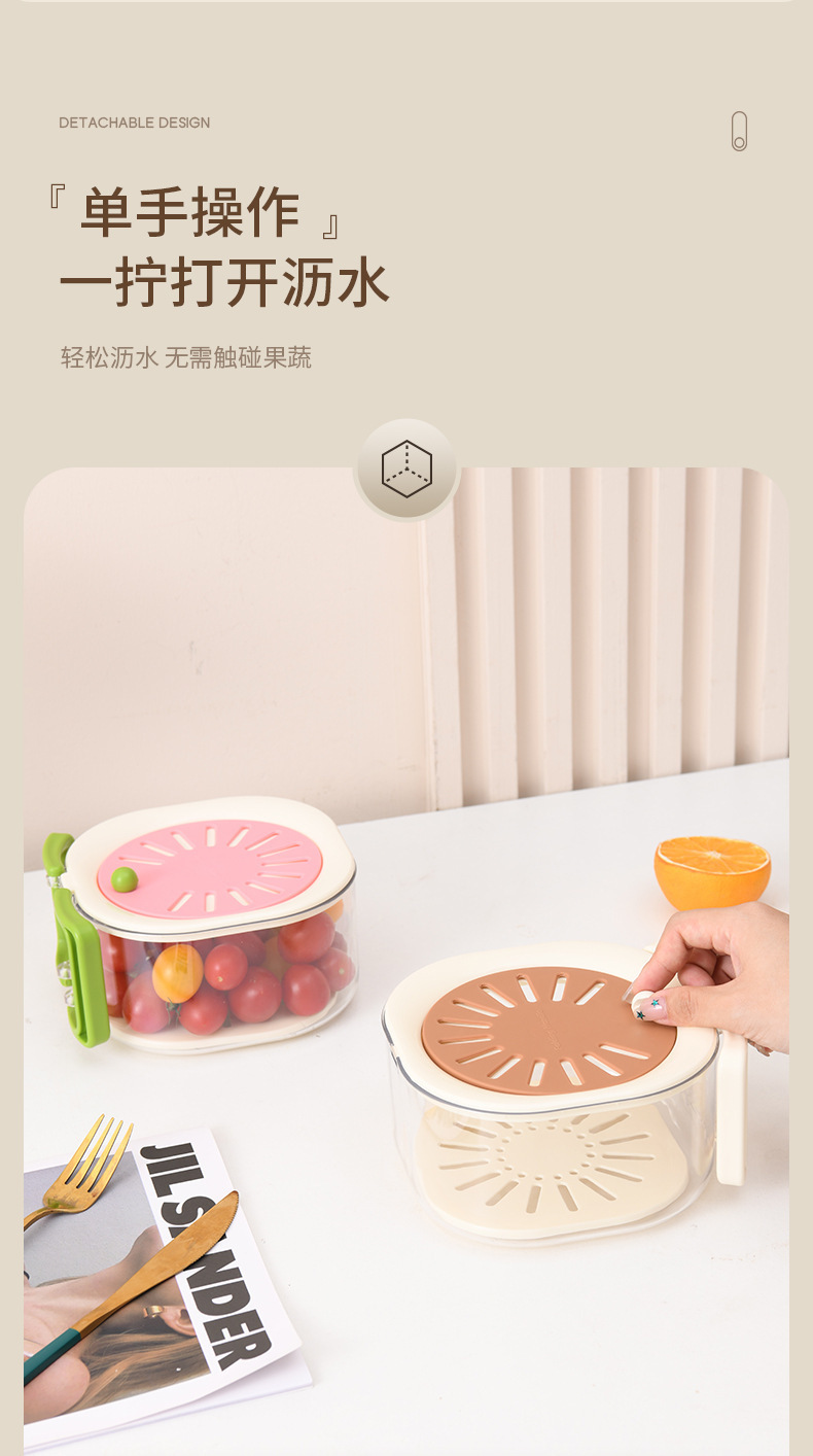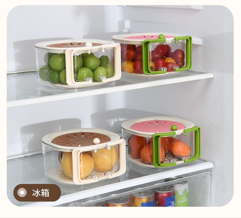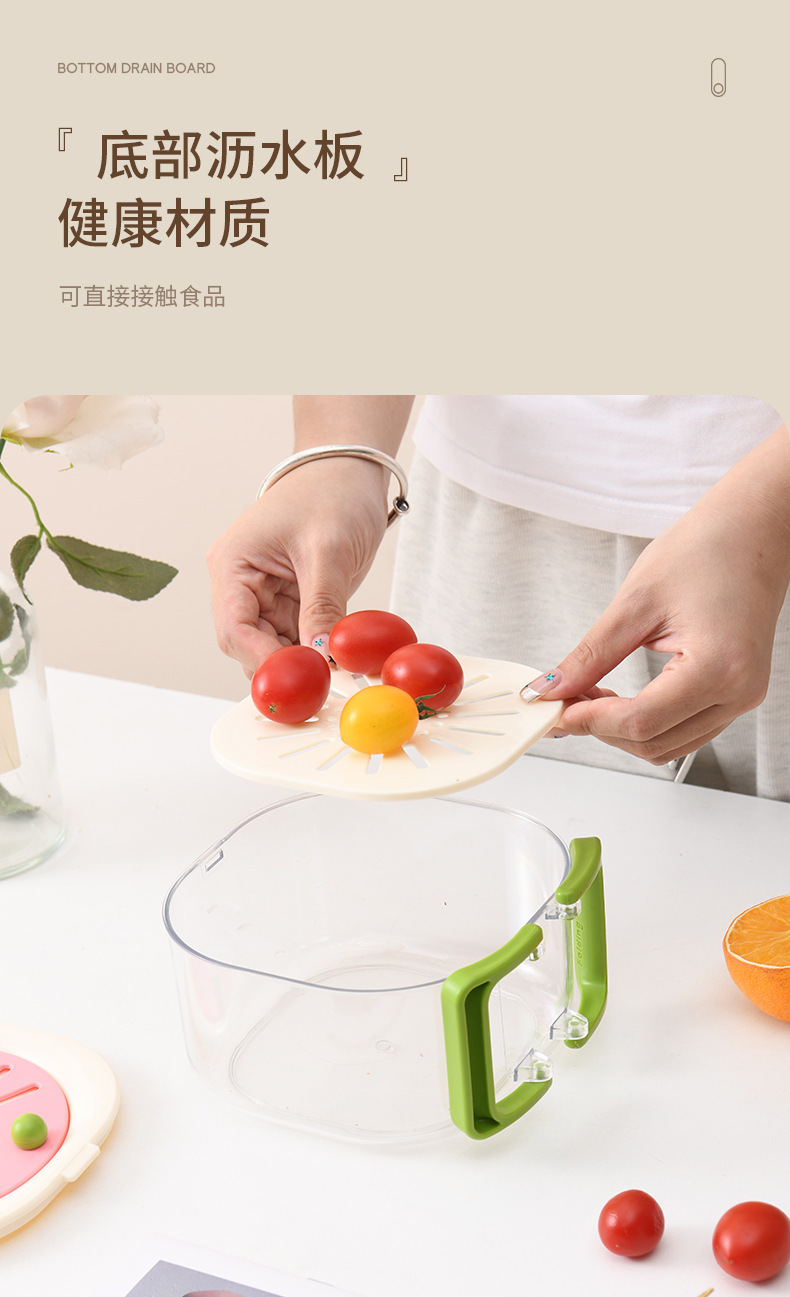 다기능 배수 접이식 손잡이 과일 저장 상자 뚜껑 야채 배수 더블 레이어 신선한 보관 상자스토어 가기