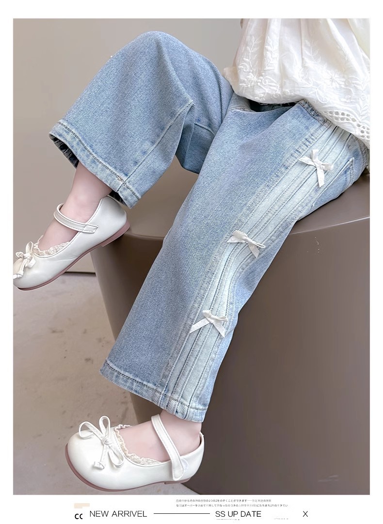 소녀 활 청바지 2025 봄과 가을 새로운 어린이 한국 스타일 아기 소녀의 스트레이트 트렌디 스트레이트 바지스토어 가기