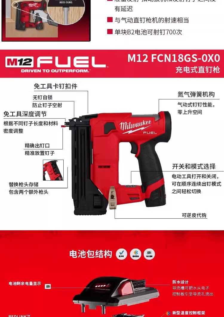 Meiwoqi M12FCN18GS 브러시리스 충전식 스트레이트 네일 건 목공 특수 F 네일 건 못 건 리튬 네일 건