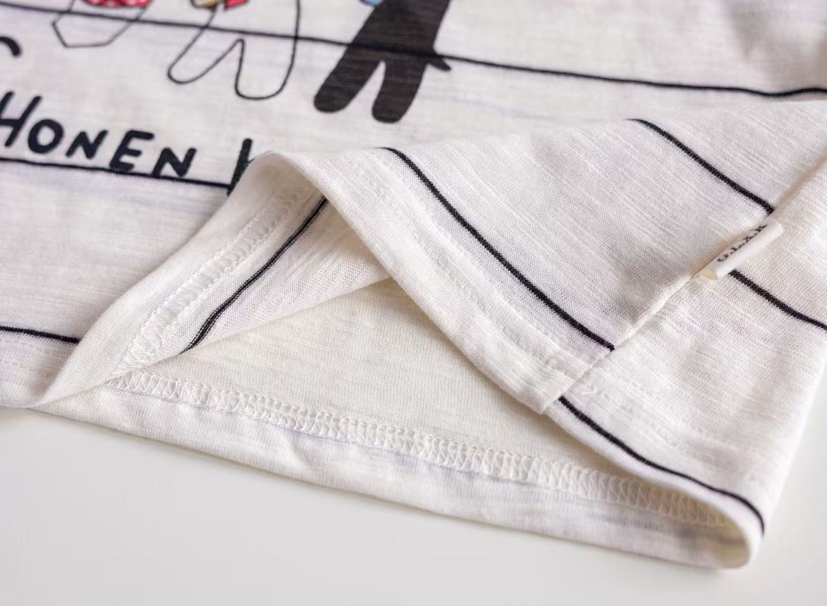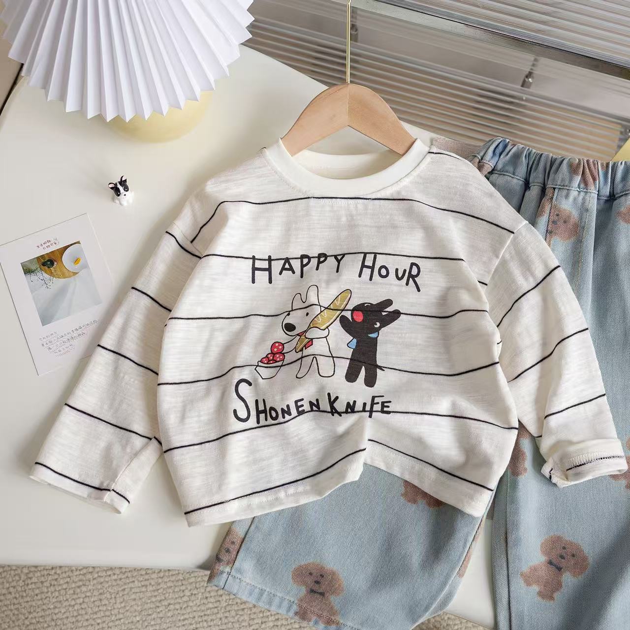 남학생 '2025 년 새 어린이 아기 줄무늬 긴팔 얇은 티셔츠 걸스 올매치 만화베이스 풀오버 탑